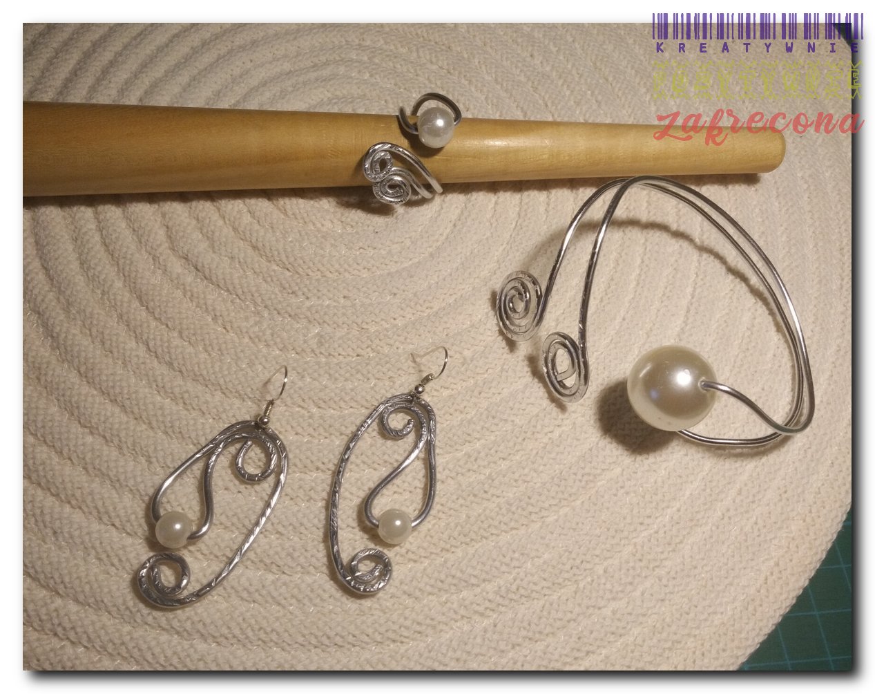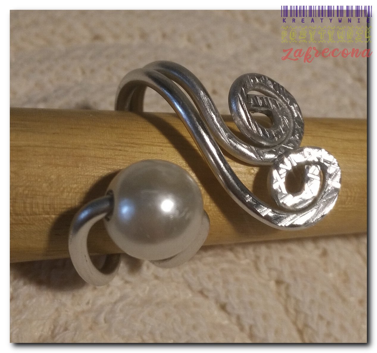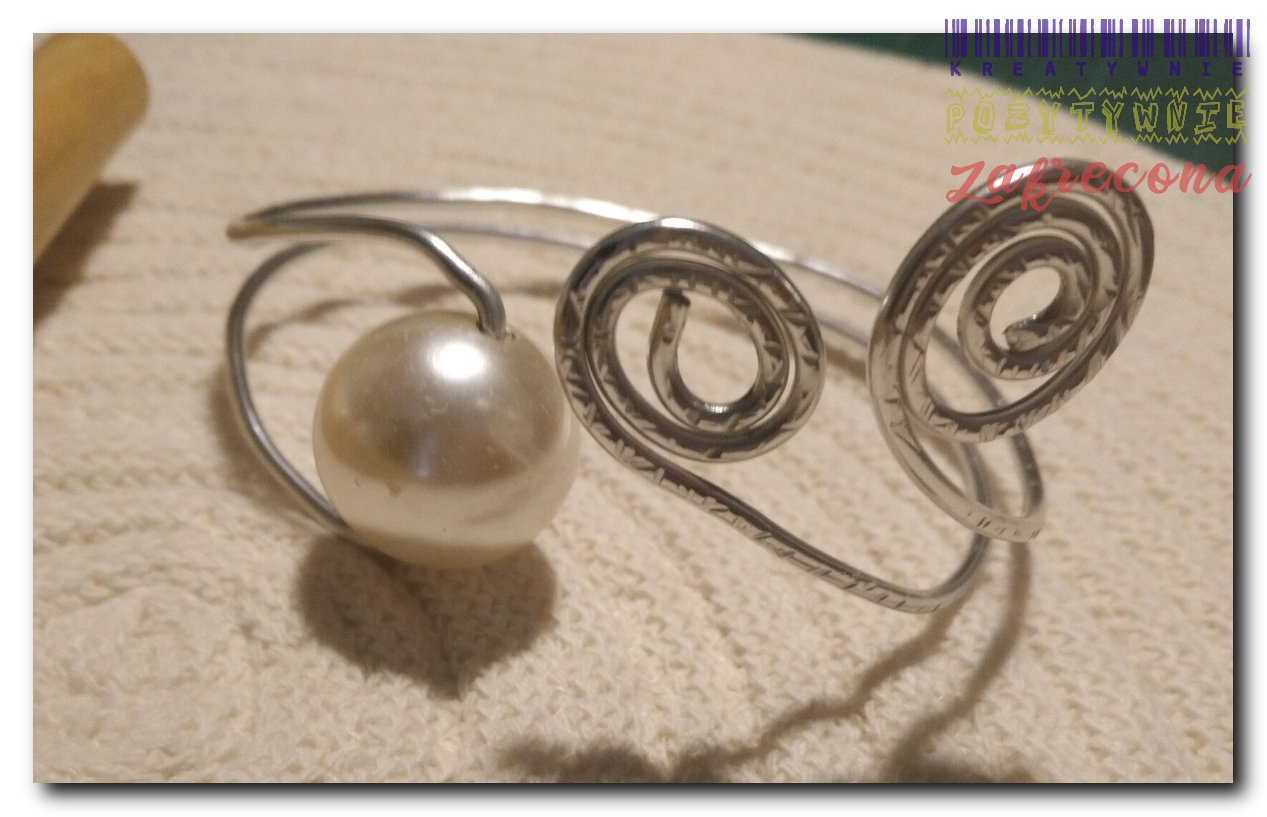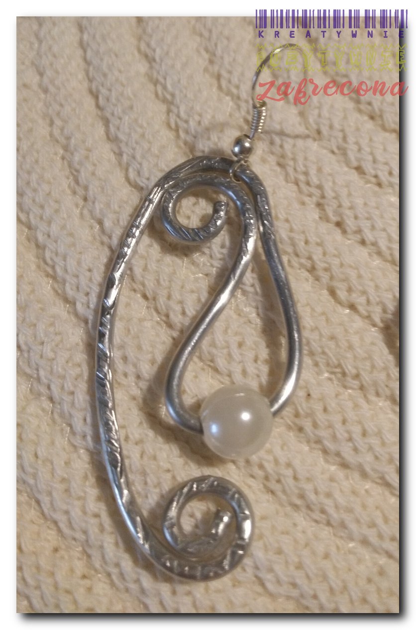 "Biała perła" w kategorii: Biżuteria z drutu aluminiowego MOJE INNE, FAJNE, RĘKODZIELNICZE ARCYDZIEŁA- UUU, OOO ... "Ślimaczki" "Srebrne spirale"