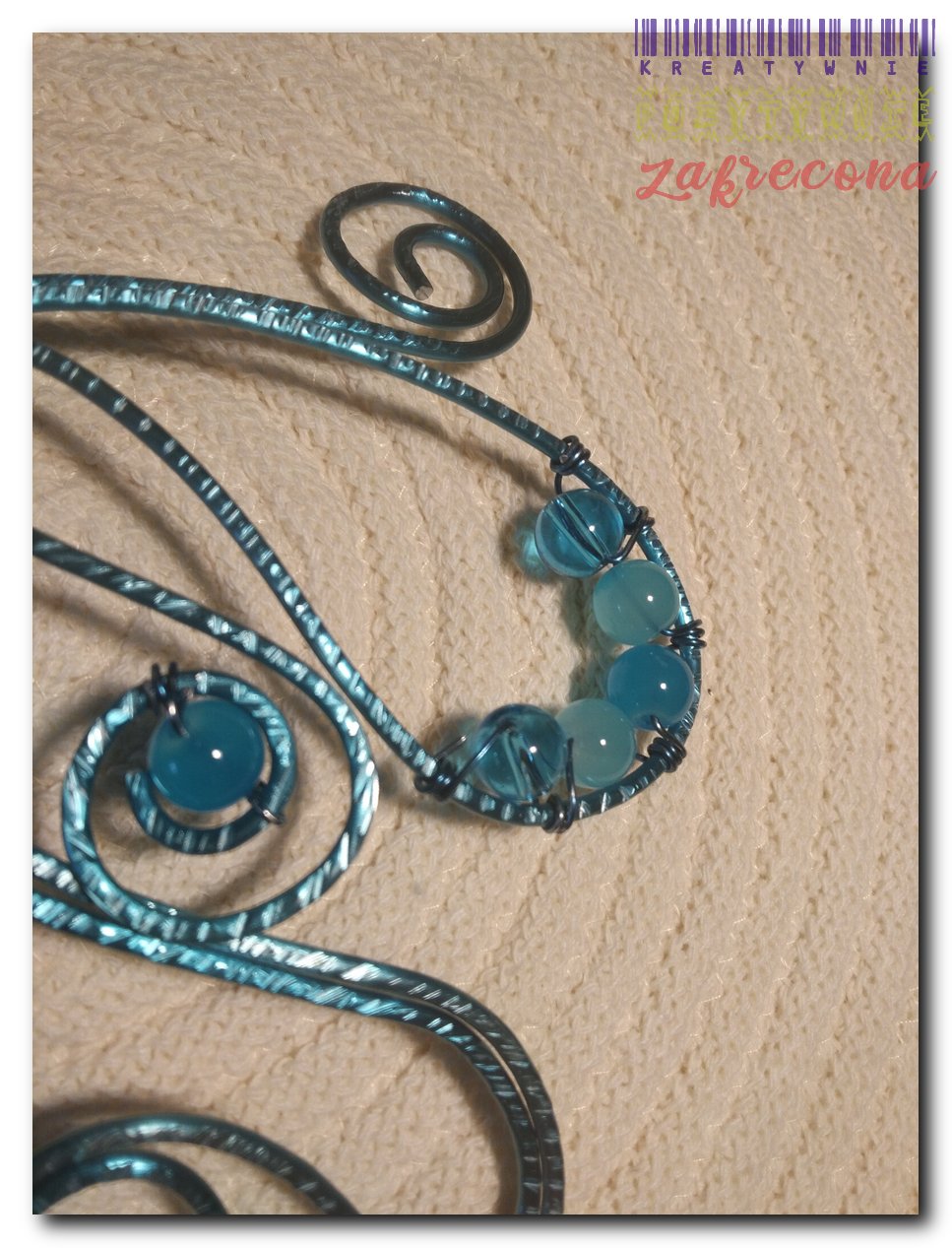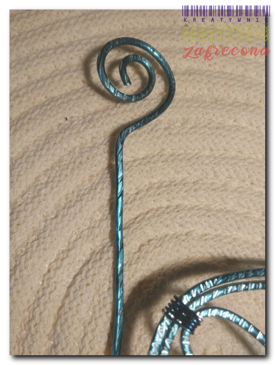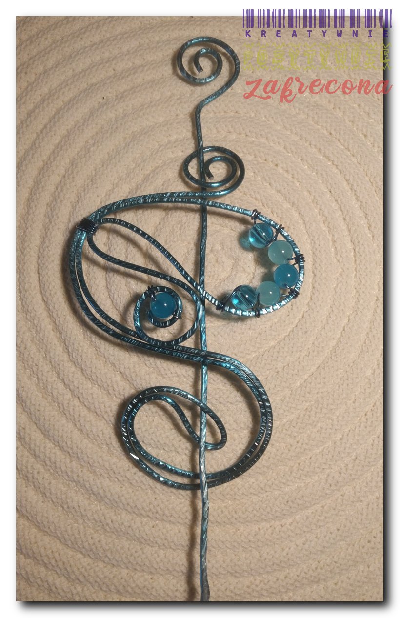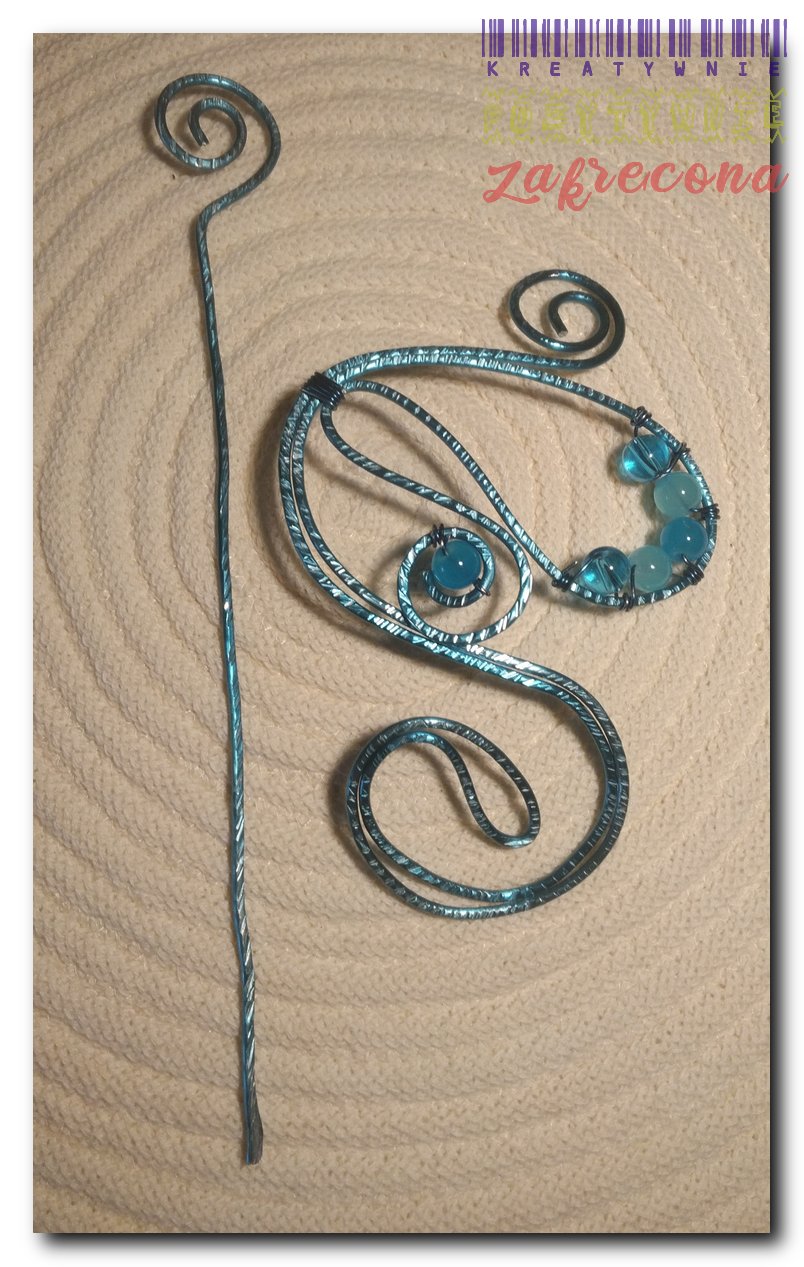 Brosza/Spinka do chusty - (morska) w kategorii: Biżuteria z drutu aluminiowego MOJE INNE, FAJNE, RĘKODZIELNICZE ARCYDZIEŁA- UUU, OOO ... Brosza/Spinka do szala (złota) Torebka "puff stitch" biało-szara