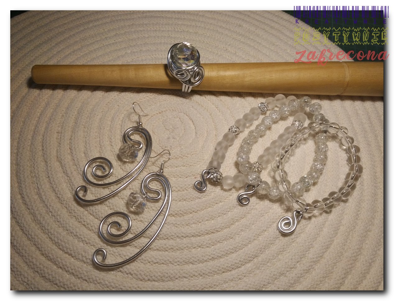 "Brylantowy" komplet:) w kategorii: Biżuteria z drutu aluminiowego MOJE INNE, FAJNE, RĘKODZIELNICZE ARCYDZIEŁA- UUU, OOO ... Brosza/Spinka do chusty (czerwona) Pierścionki różne