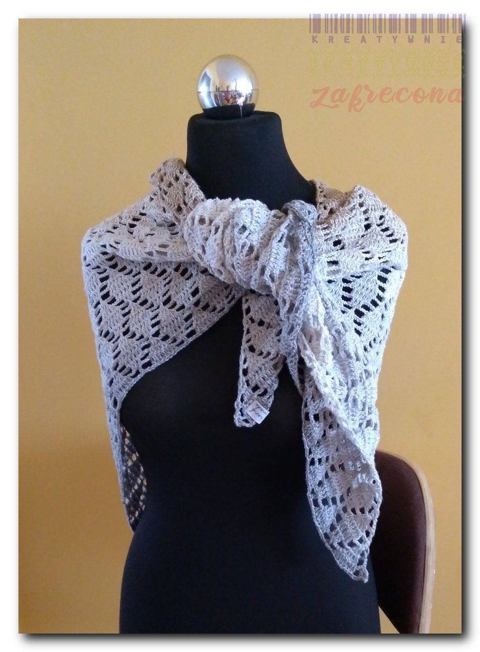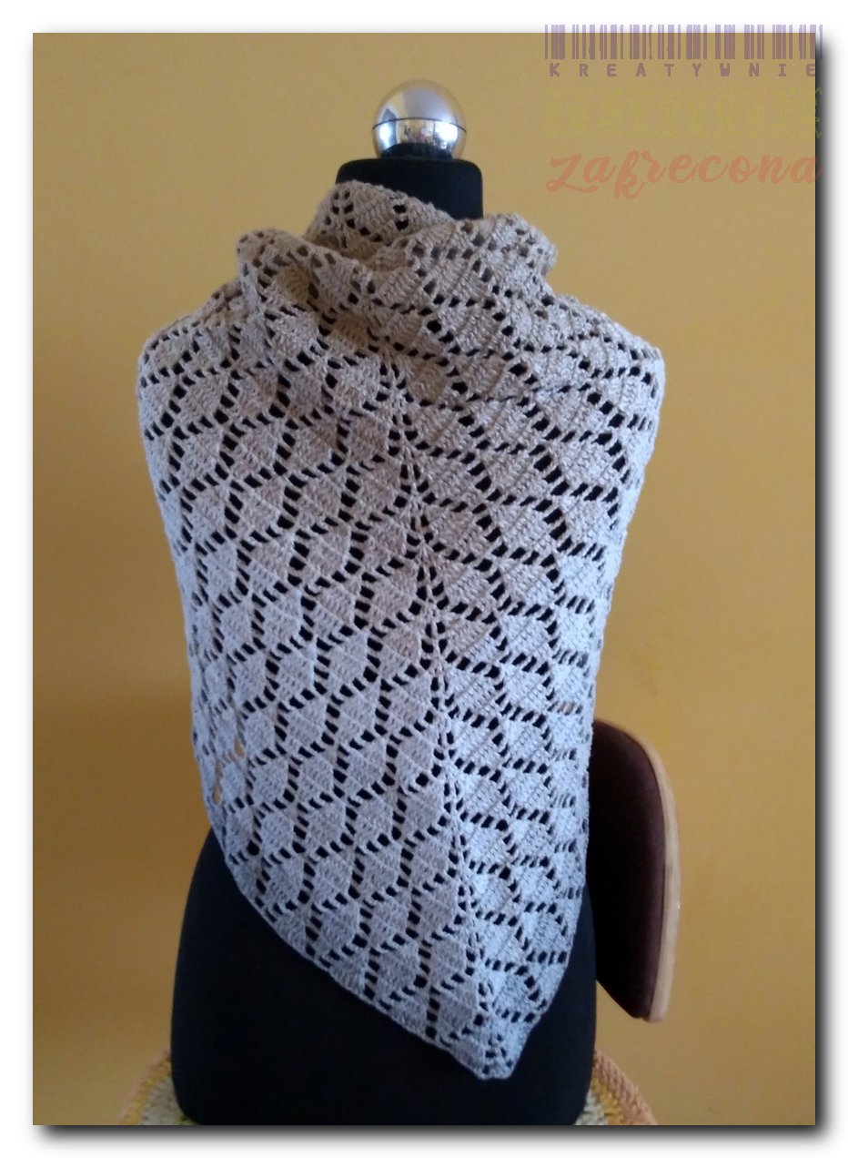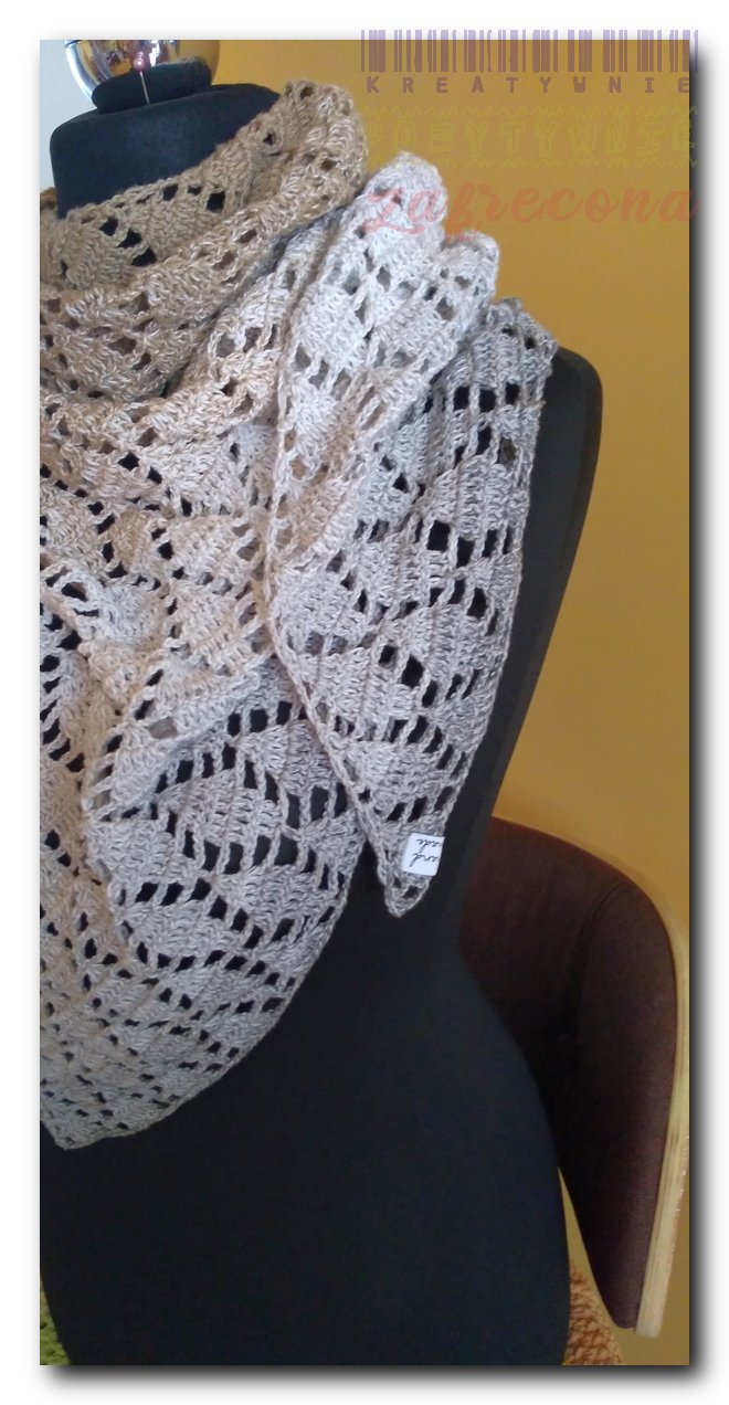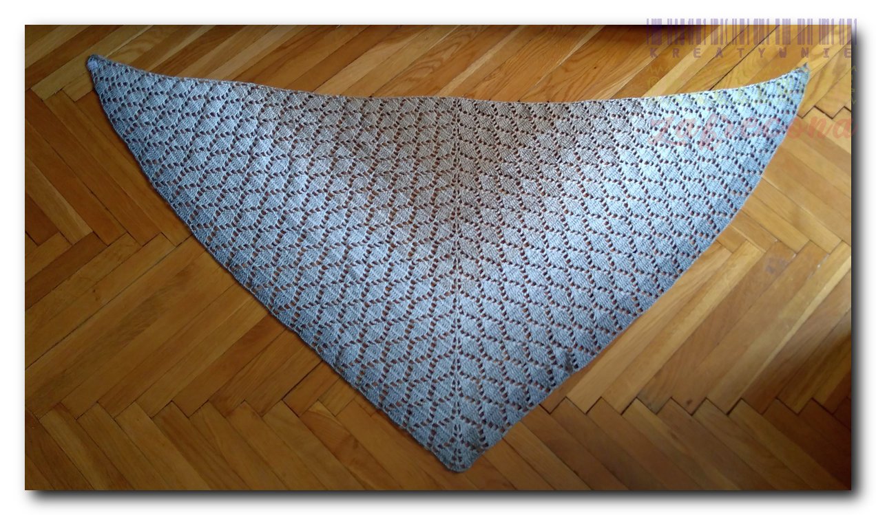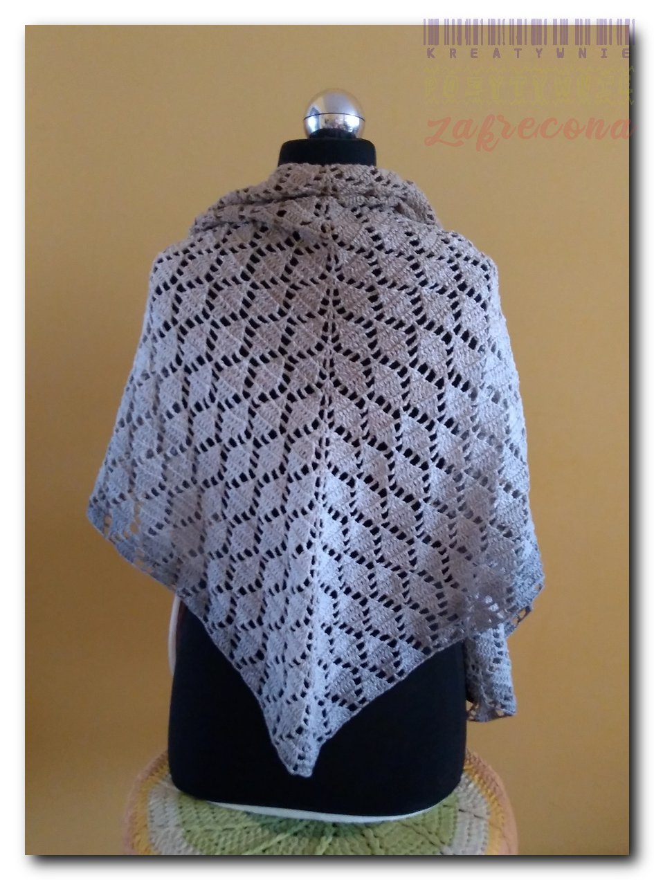 Chusta przerabiana wzorem z motywem liści, taka jak poprzednia (zob. TUTAJ), ale z lekko udoskonalonym wzorem i w innej kolorystyce.