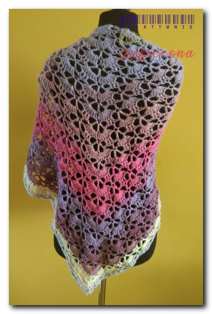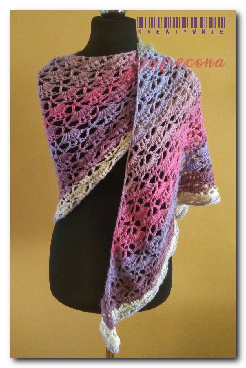 Chusta ze względu na ażurowy wzór sprawdzi się również wiosną i w chłodne letnie wieczory.