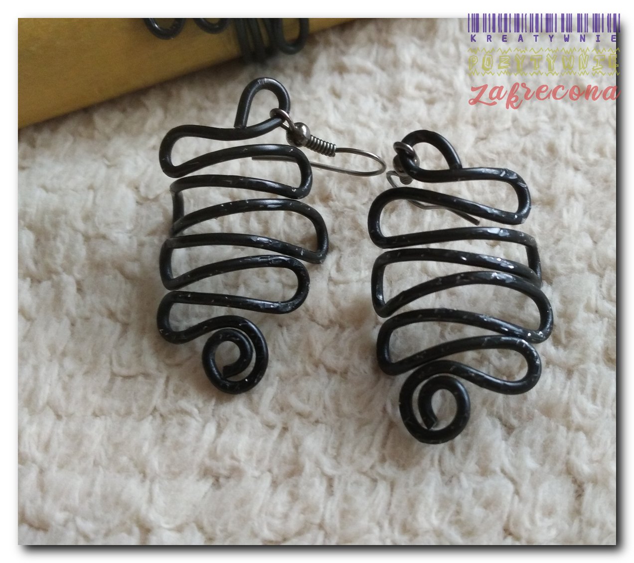 Czarne spirale w kategorii: Biżuteria z drutu aluminiowego Materiały: Drut aluminiowy biżuteryjny 1,5 mm Bigle MOJE INNE, FAJNE, RĘKODZIELNICZE ARCYDZIEŁA- UUU, OOO ... Różowe koła Czarna perła