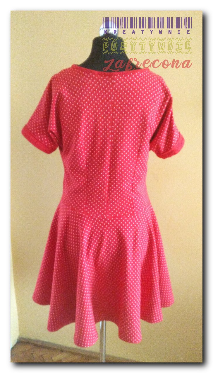 Czerwona sukienka w groszki.