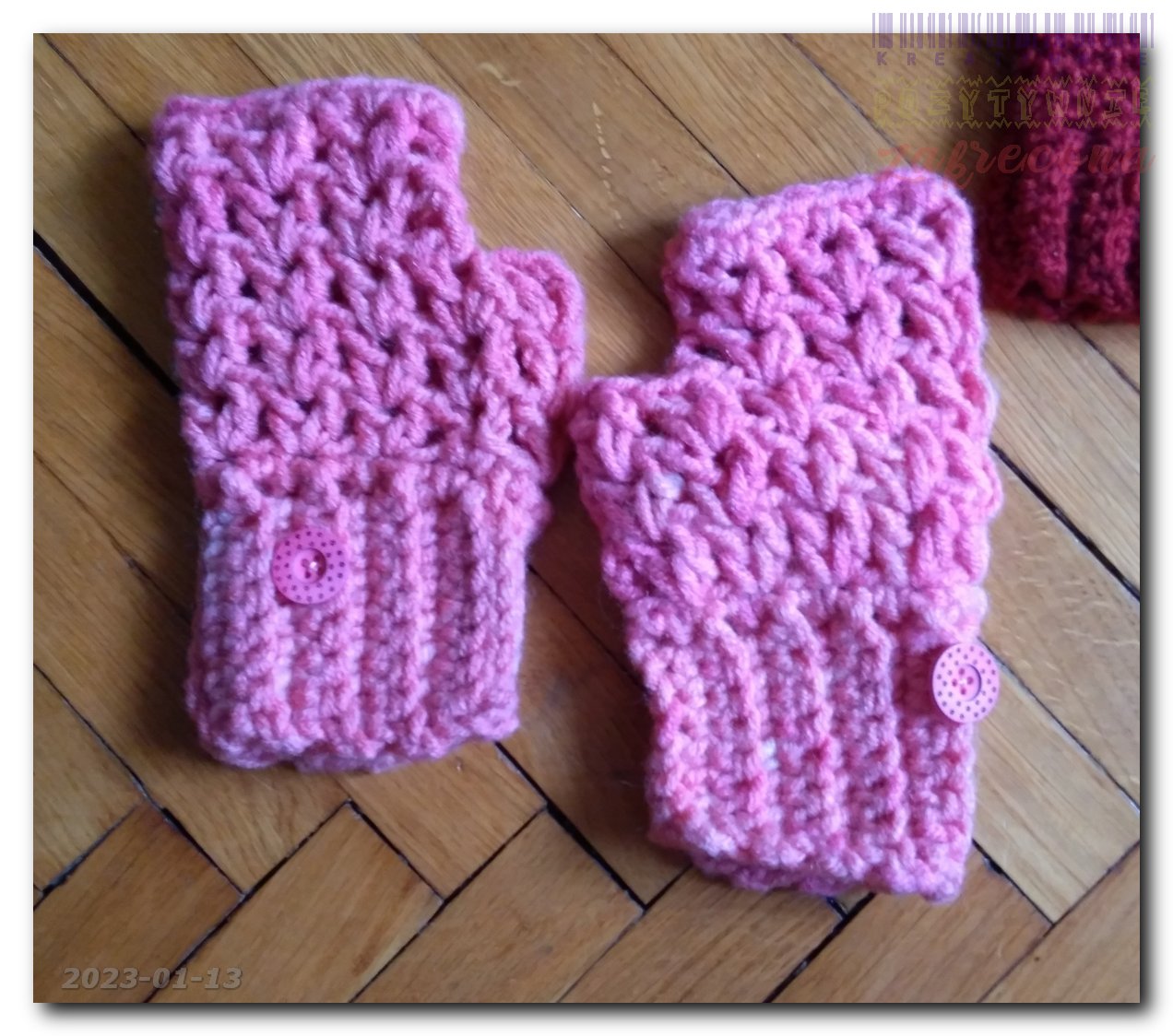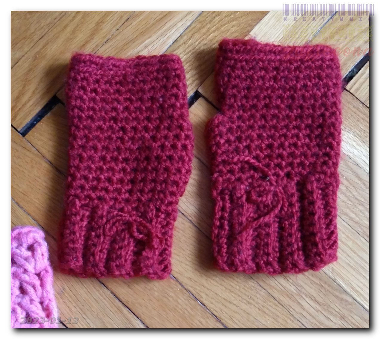 Dwie pary ręczkawiczek bezpalcowych w kategorii: Chusty, szale, czapki itp. na szydełku MOJE INNE, FAJNE, RĘKODZIELNICZE ARCYDZIEŁA- UUU, OOO ... Bordowa "puchata" sukienka - wersja 2 Kilka zimowych czapek