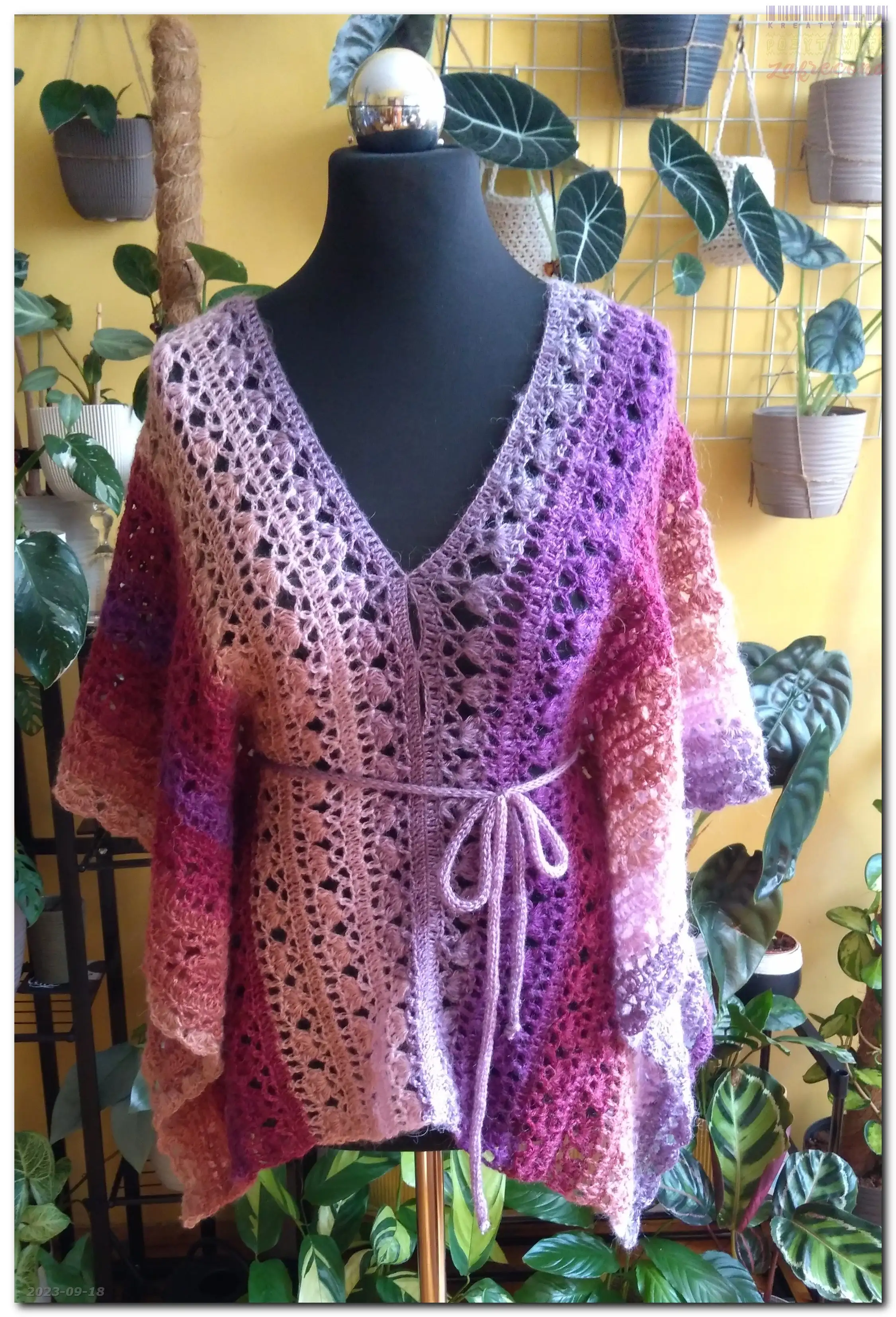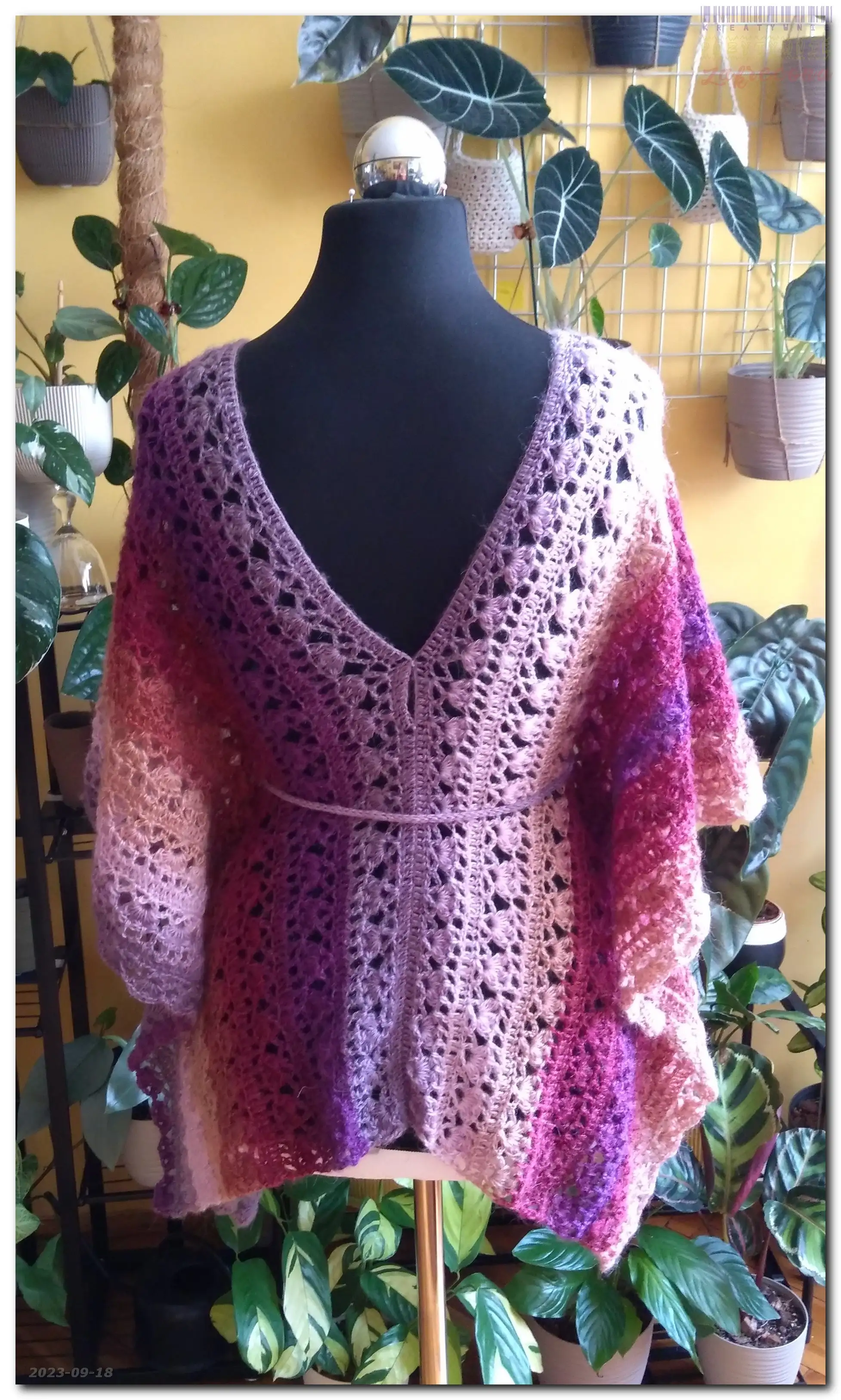 Jesienne ponczo w kategorii: Na szydełku - ubrania jesienne i zimowe Szydełko: 4,0 mm Włóczka: Nako Angora Luks Color MOJE INNE, FAJNE, RĘKODZIELNICZE ARCYDZIEŁA- UUU, OOO ... Jesienny sweter - wersja 2 Kamizelka pajączek