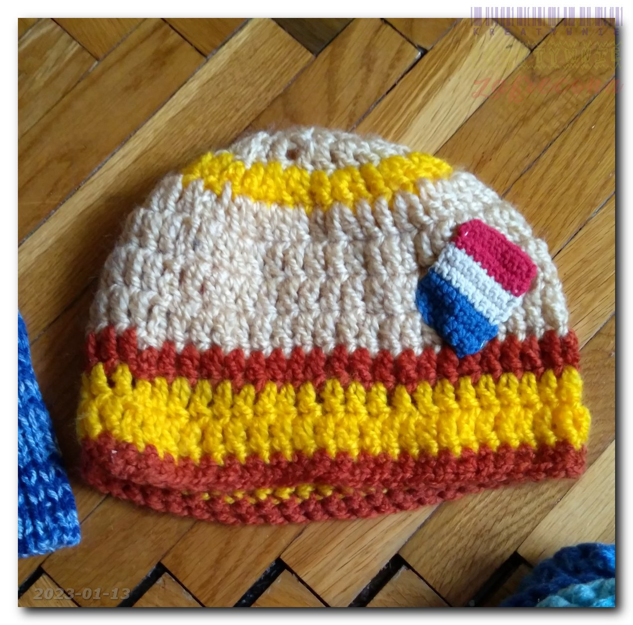 Kilka zimowych czapek w kategorii: Chusty, szale, czapki itp. na szydełku MOJE INNE, FAJNE, RĘKODZIELNICZE ARCYDZIEŁA- UUU, OOO ... Dwie pary ręczkawiczek bezpalcowych Chusta z falbanką