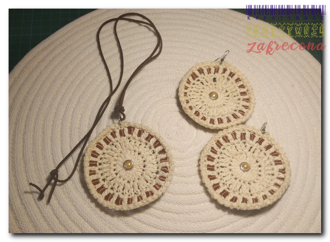 "Koła" Komplet na szydełku w kategorii: Biżuteria na szydełku i nie tylko MOJE INNE, FAJNE, RĘKODZIELNICZE ARCYDZIEŁA- UUU, OOO ... Komplety ze sznurka Korale i kolczyki (makrama)