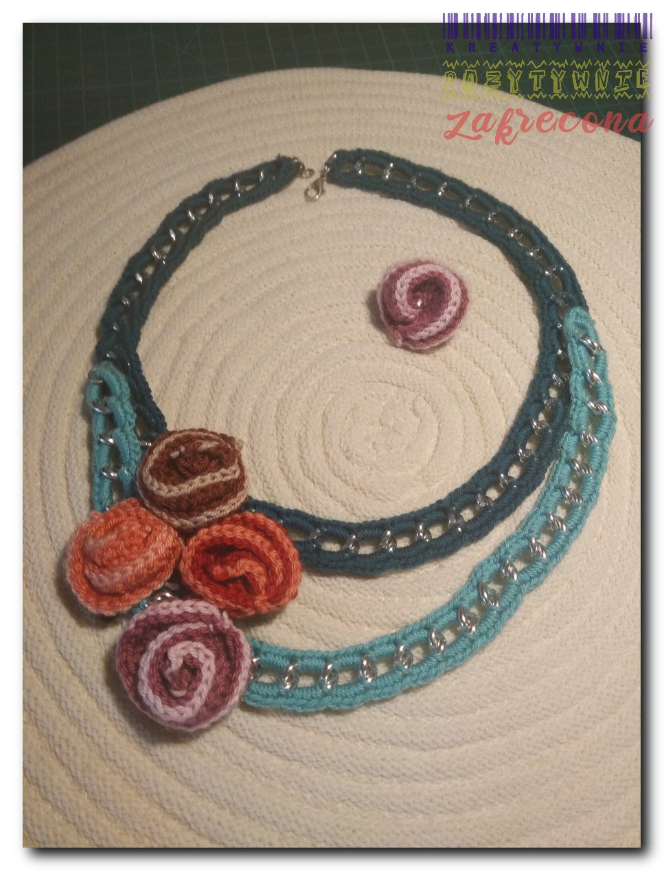 Kolia z kwiatami (z pierścionkiem) w kategorii: Biżuteria na szydełku i nie tylko MOJE INNE, FAJNE, RĘKODZIELNICZE ARCYDZIEŁA- UUU, OOO ... Korale i kolczyki (makrama) Bransoletki różne