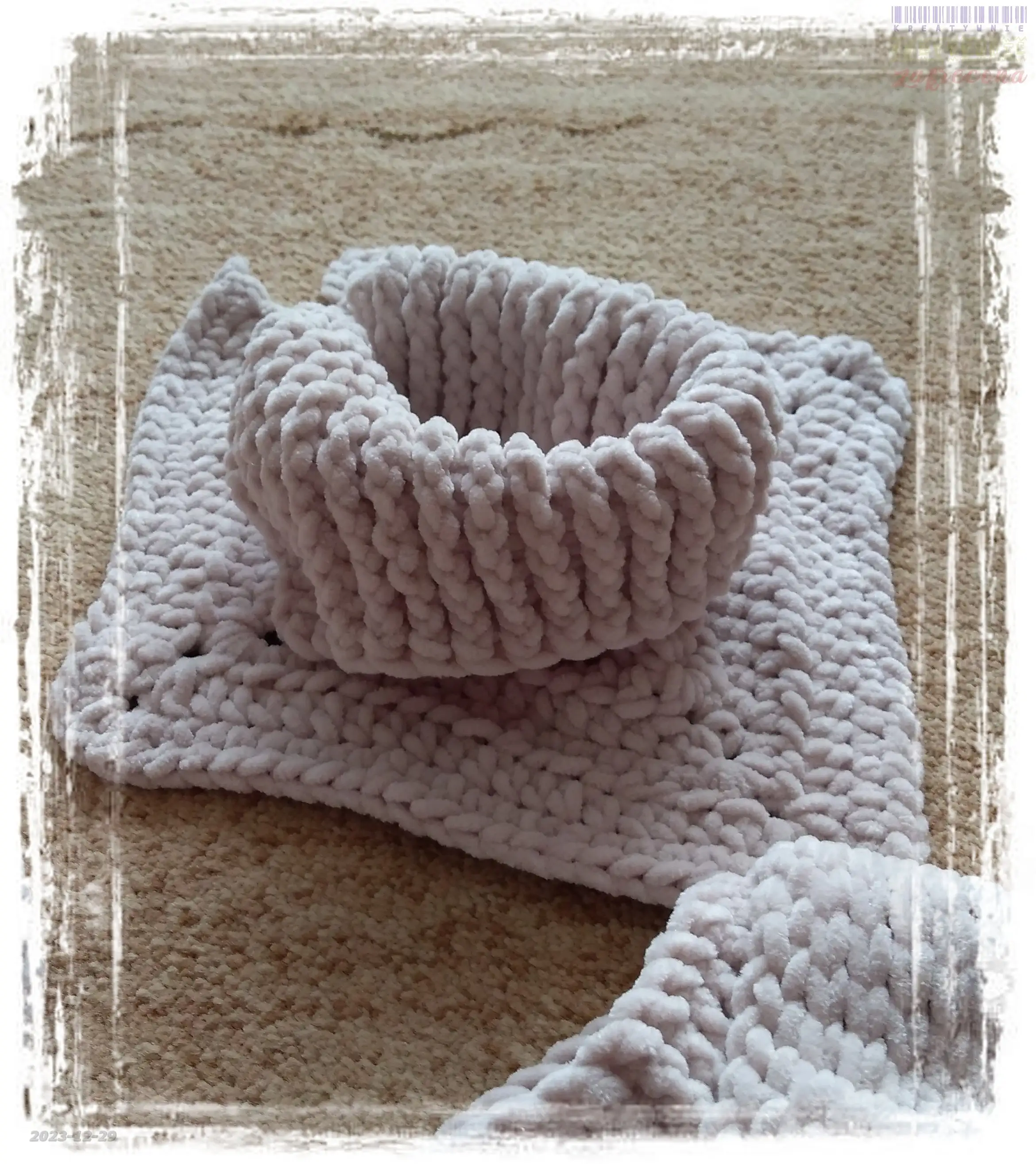 Komplet "Baby Dolphin" w kategorii: Chusty, szale, czapki itp. na szydełku Włóczka: Himalaya Baby Dolphin Szydełko: 6 mm MOJE INNE, FAJNE, RĘKODZIELNICZE ARCYDZIEŁA- UUU, OOO ... Komplet "Love and Care" Chusta "Granny Stitch"