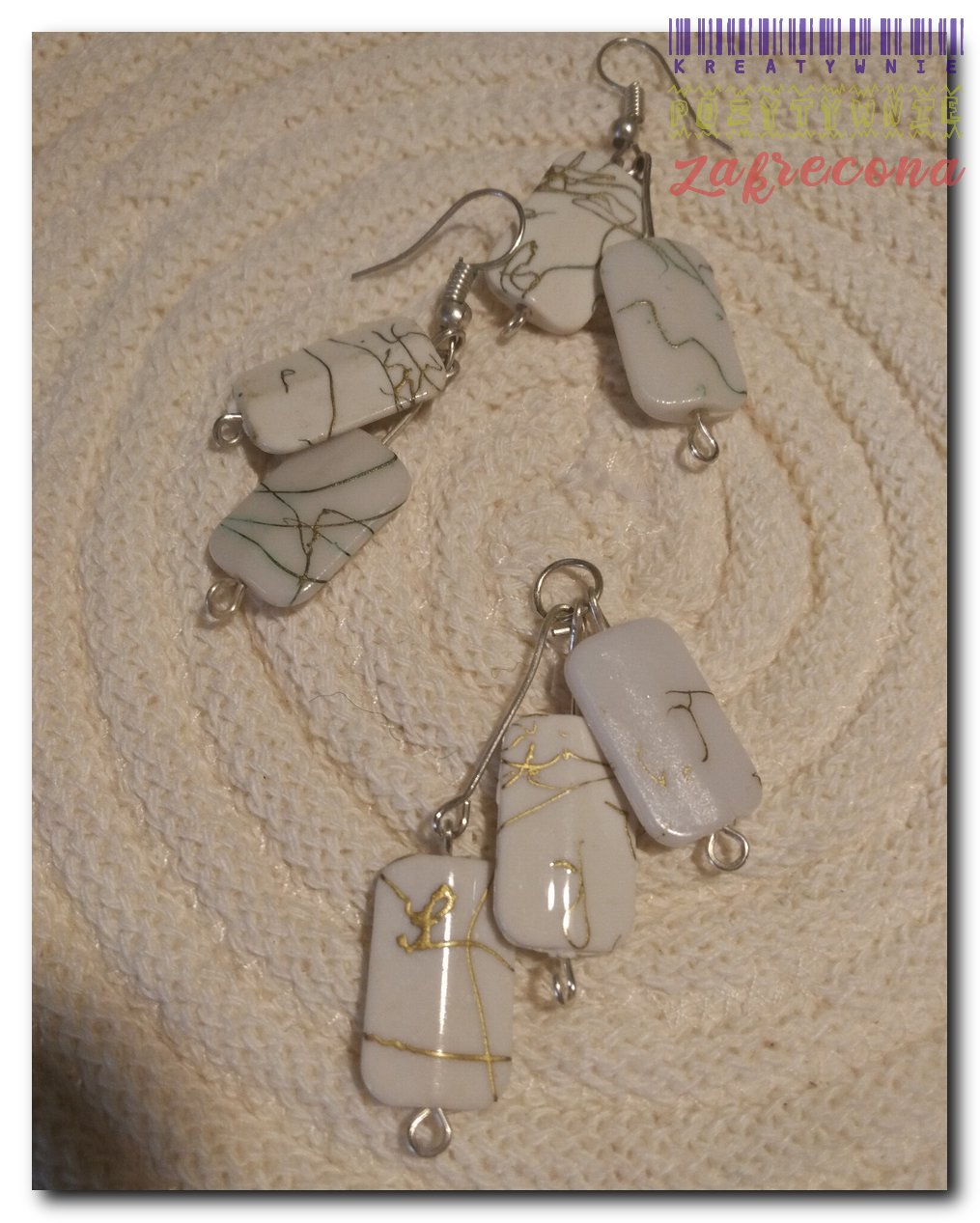 Komplet biżuterii (białe koraliki) w kategorii: Biżuteria na szydełku i nie tylko MOJE INNE, FAJNE, RĘKODZIELNICZE ARCYDZIEŁA- UUU, OOO ... "Kiść winogron" - Kolczyki i przywieszka Komplet zimowy