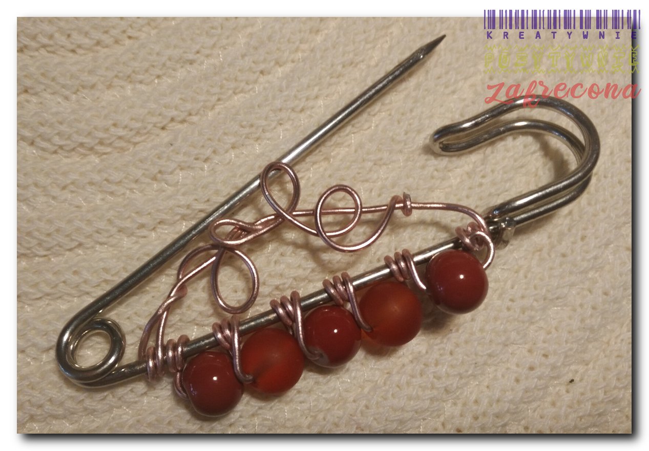 "Koralowy warkocz" w kategorii: Biżuteria z drutu aluminiowego MOJE INNE, FAJNE, RĘKODZIELNICZE ARCYDZIEŁA- UUU, OOO ... "Złota rybka" Brosza/Spinka do chusty (czerwona)