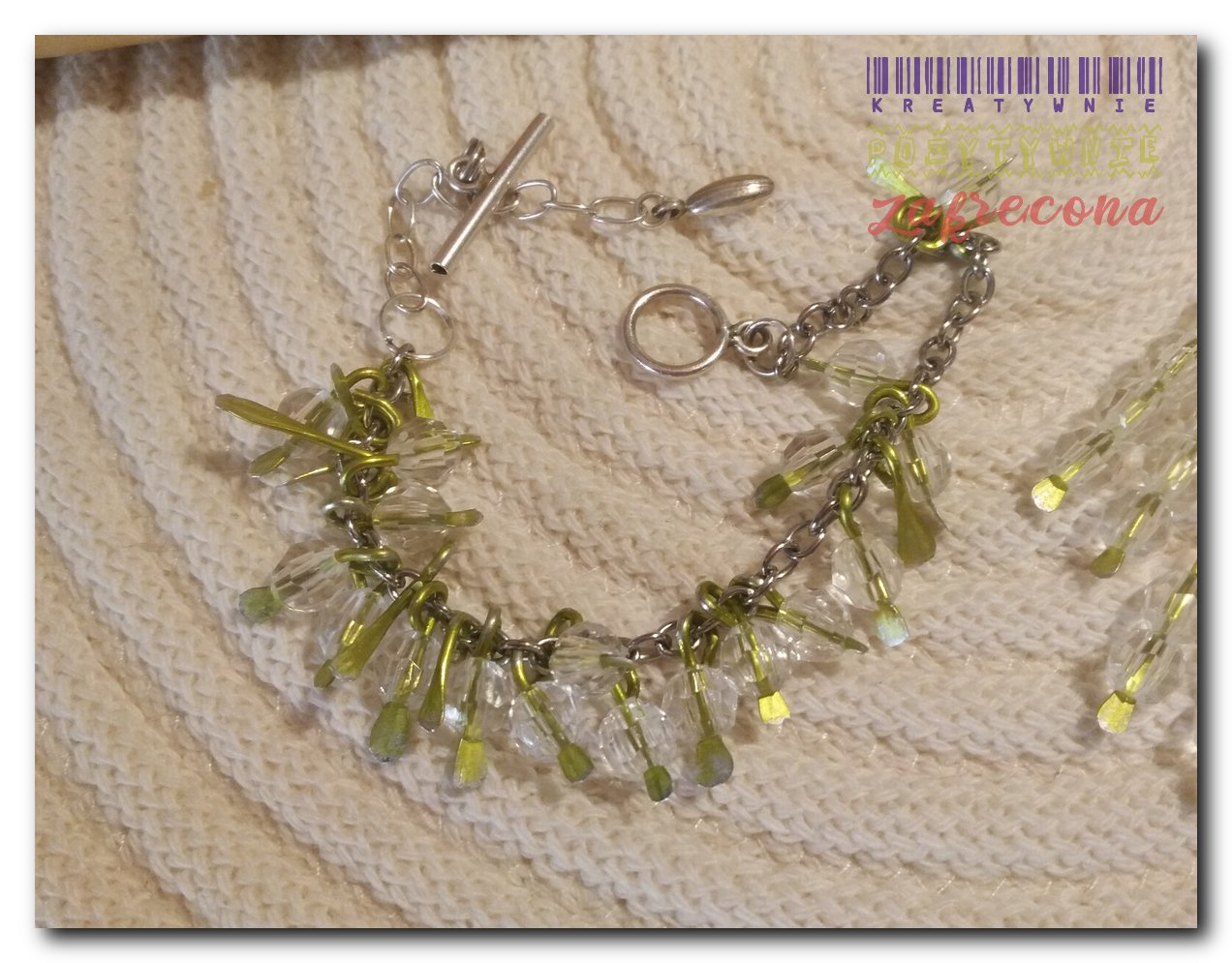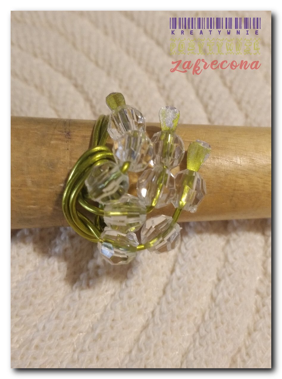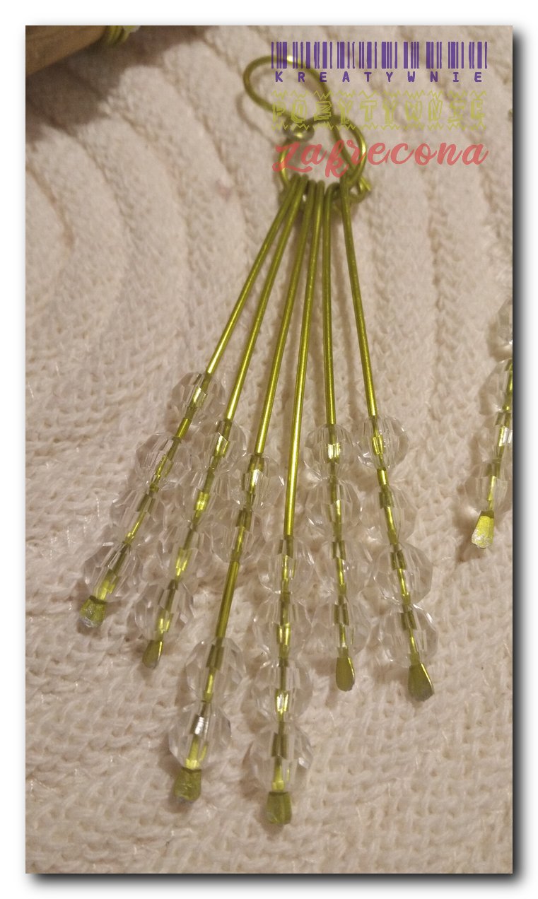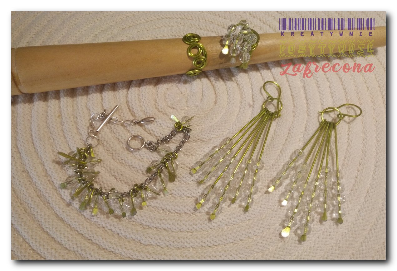 Komplet biżuterii wykonany z drutu aluminiowego 1mm i koralików akrylowych, przezroczystych.