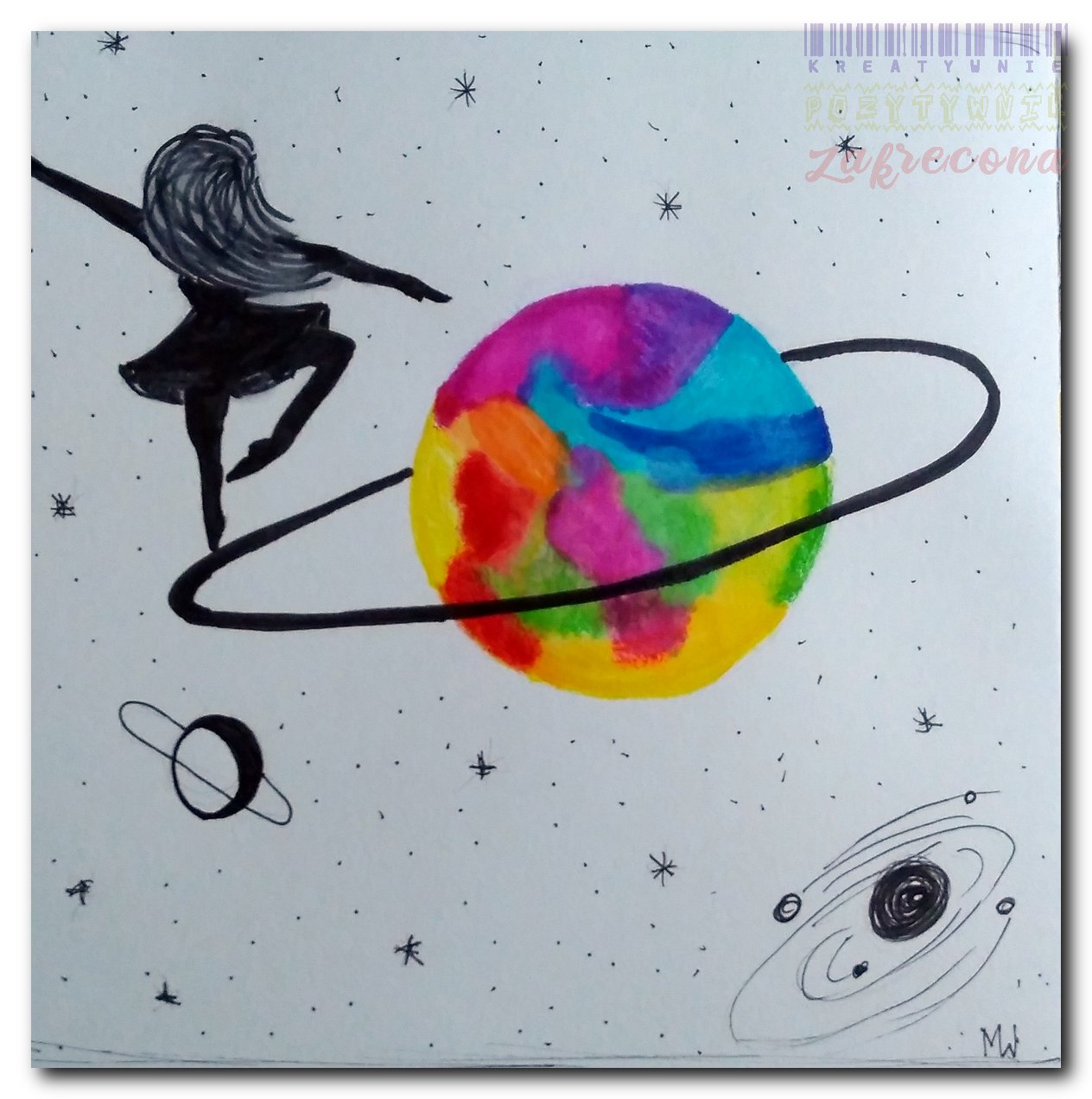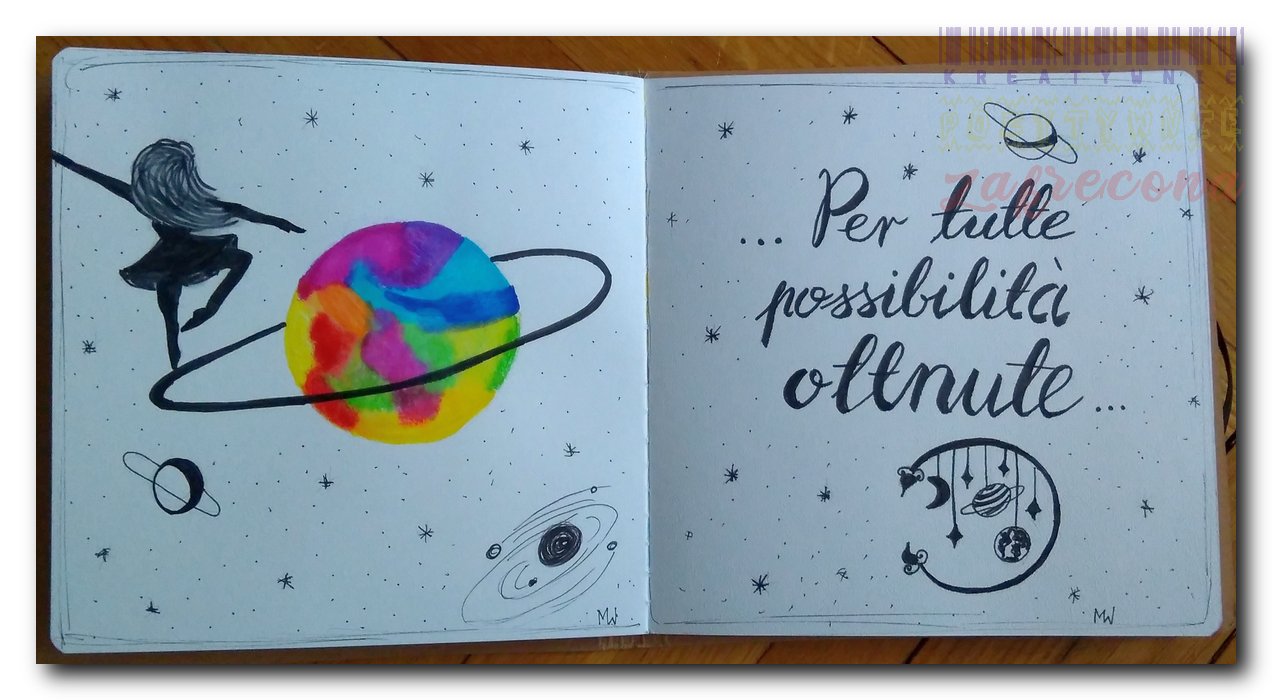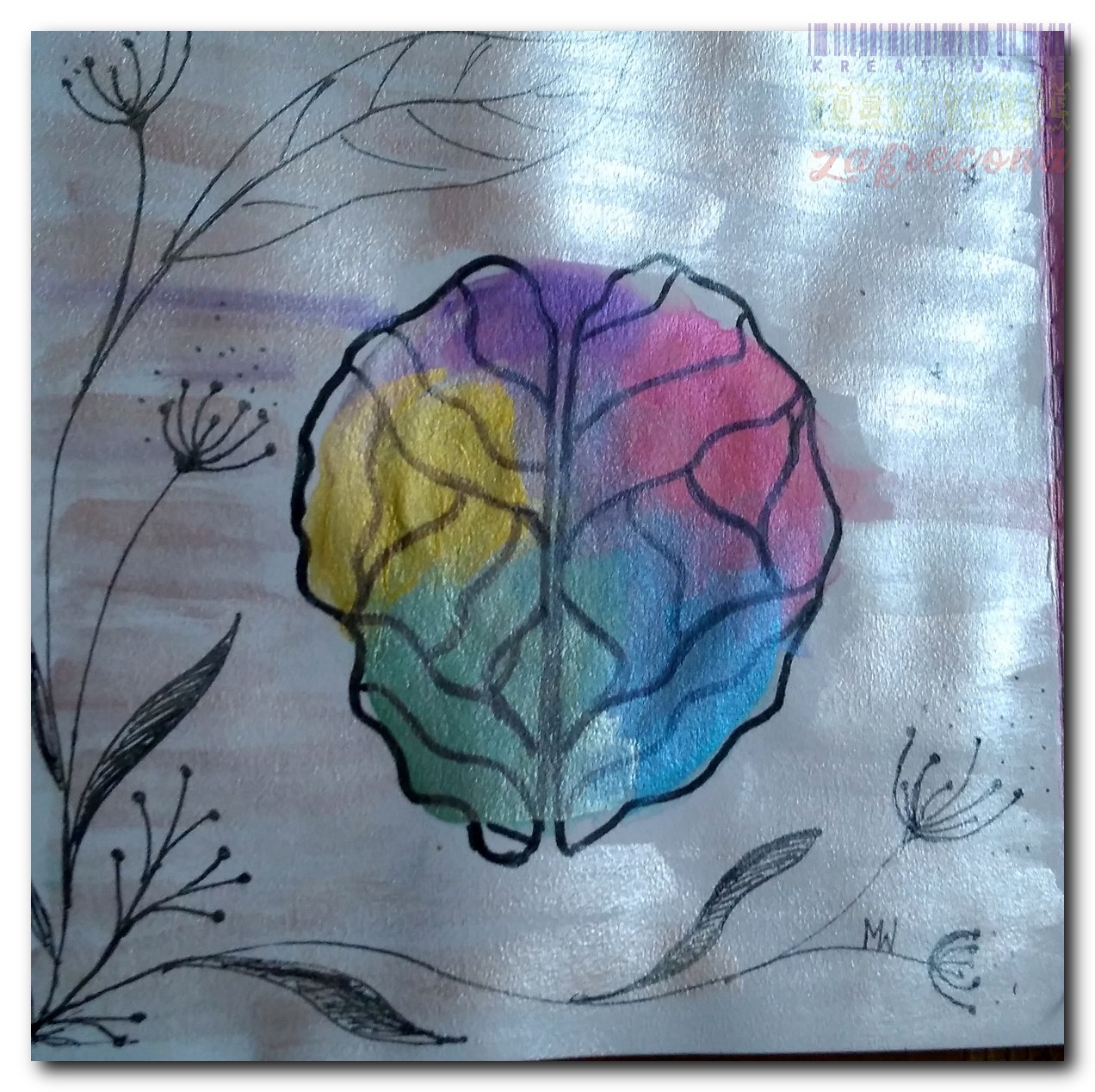 Technika: Akwarele metalizowane, cienkopisy, markery akwarelowe.