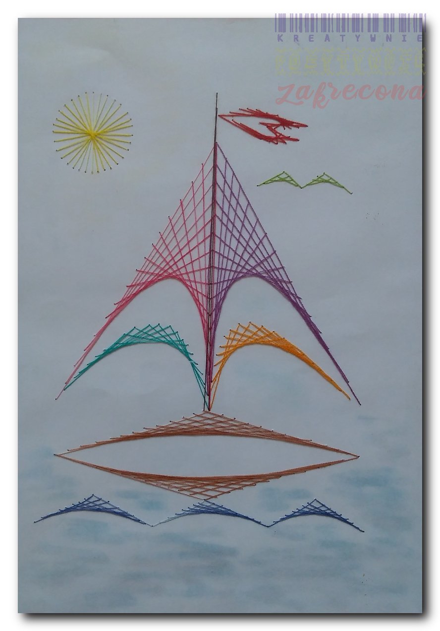 Łódki nitką malowane w kategorii: Obrazki MOJE INNE, FAJNE, RĘKODZIELNICZE ARCYDZIEŁA- UUU, OOO ... Piórnik na kredki Kopertówka z portfelikiem