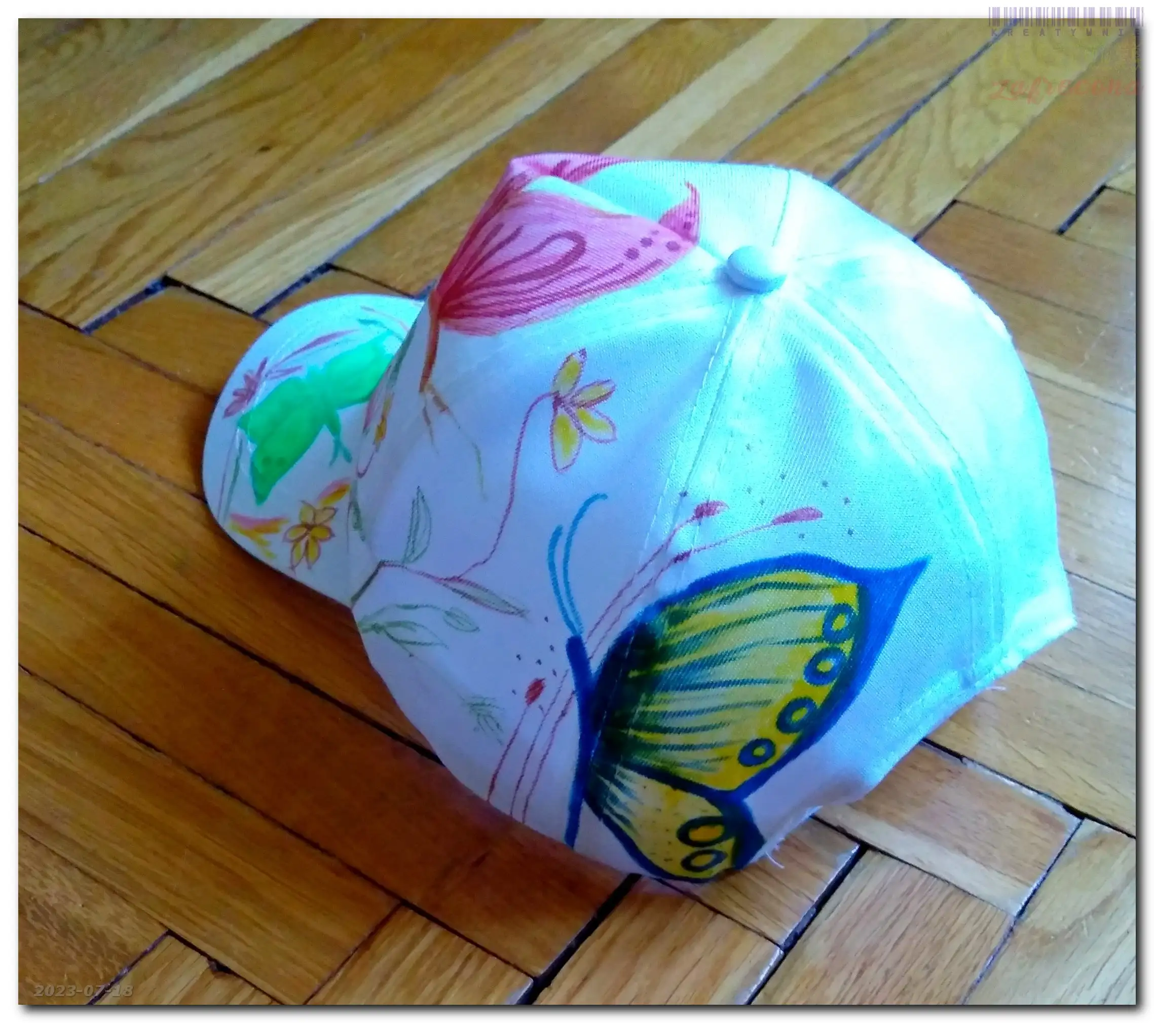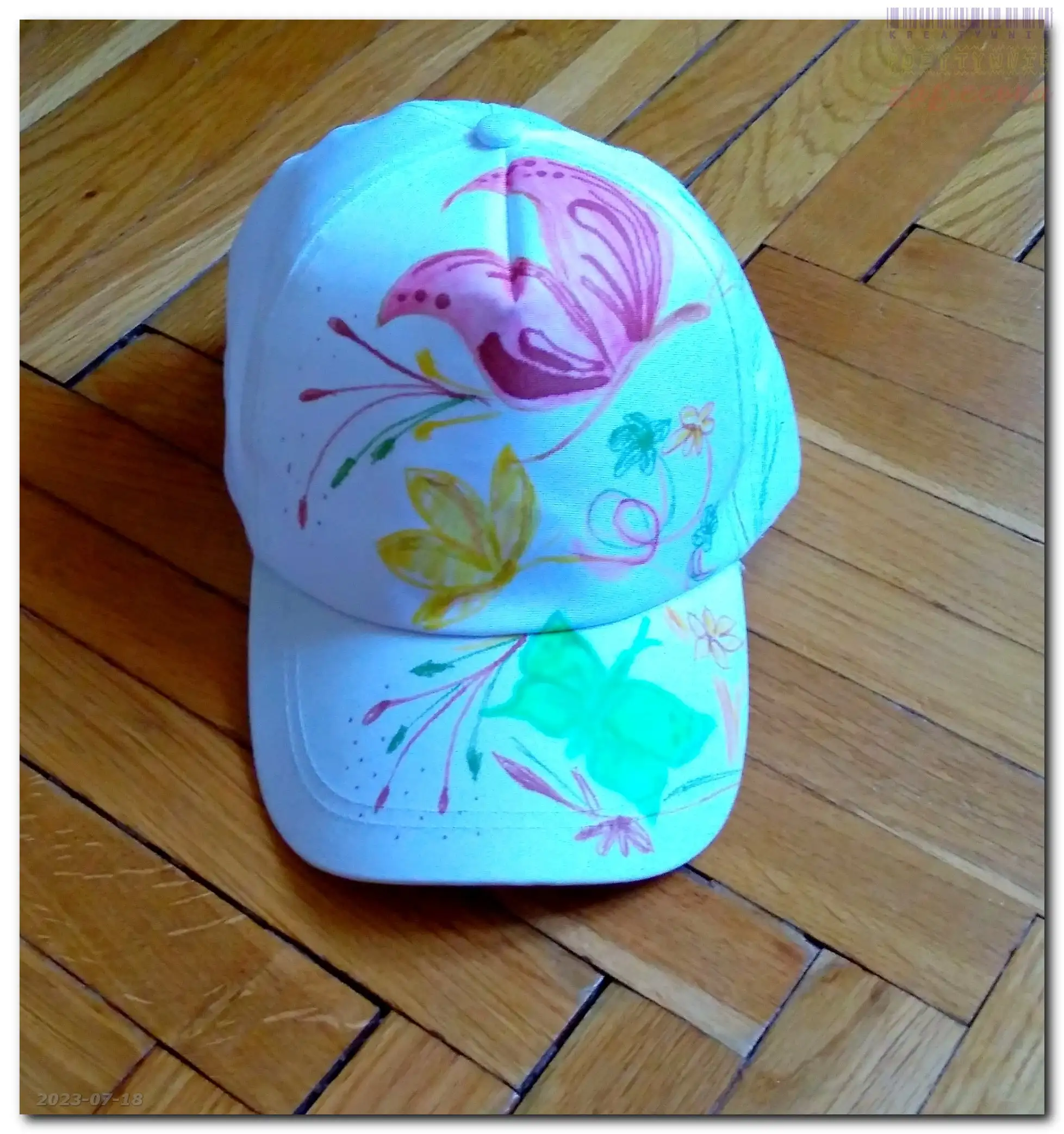 Malowana czapka w kategorii: Inne MOJE INNE, FAJNE, RĘKODZIELNICZE ARCYDZIEŁA- UUU, OOO ... Sukienki malowane Czerwiec '23