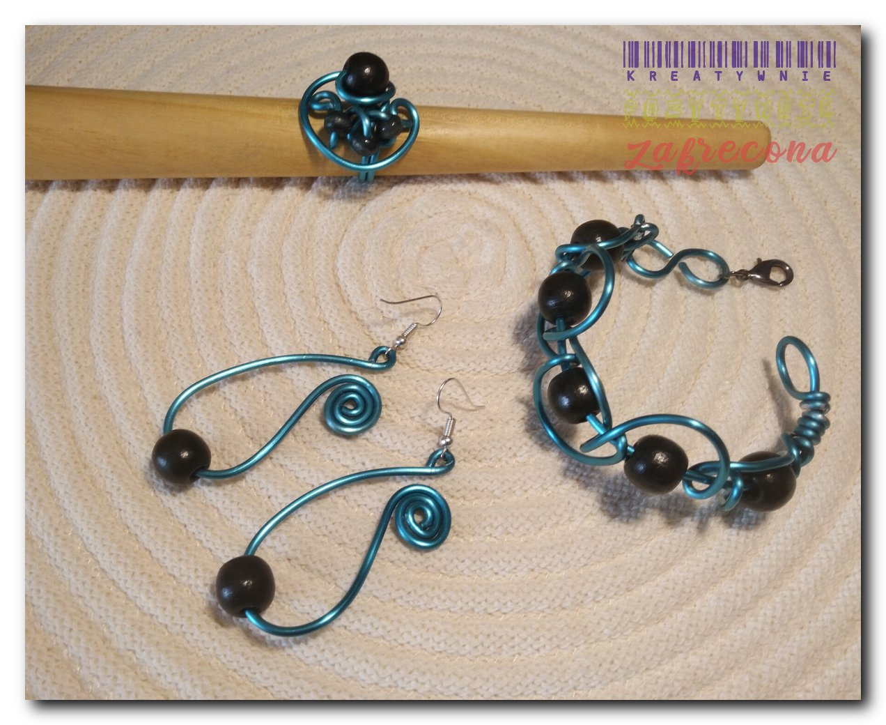 "Morskie fale" w kategorii: Biżuteria z drutu aluminiowego MOJE INNE, FAJNE, RĘKODZIELNICZE ARCYDZIEŁA- UUU, OOO ... "Turkusowo-granatowy duet" "Chabrowe lato"