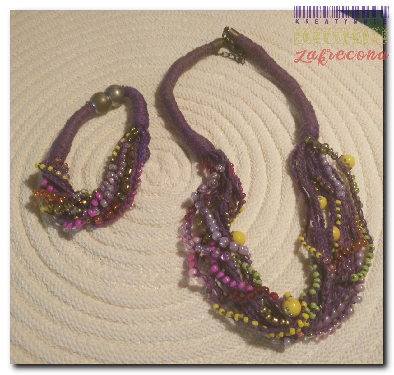 Naszyjnik i bransoletka (komplet fioletowy) w kategorii: Biżuteria na szydełku i nie tylko MOJE INNE, FAJNE, RĘKODZIELNICZE ARCYDZIEŁA- UUU, OOO ... Kolczyki różne Komplet biżuterii BOHO (pomarańczowy)