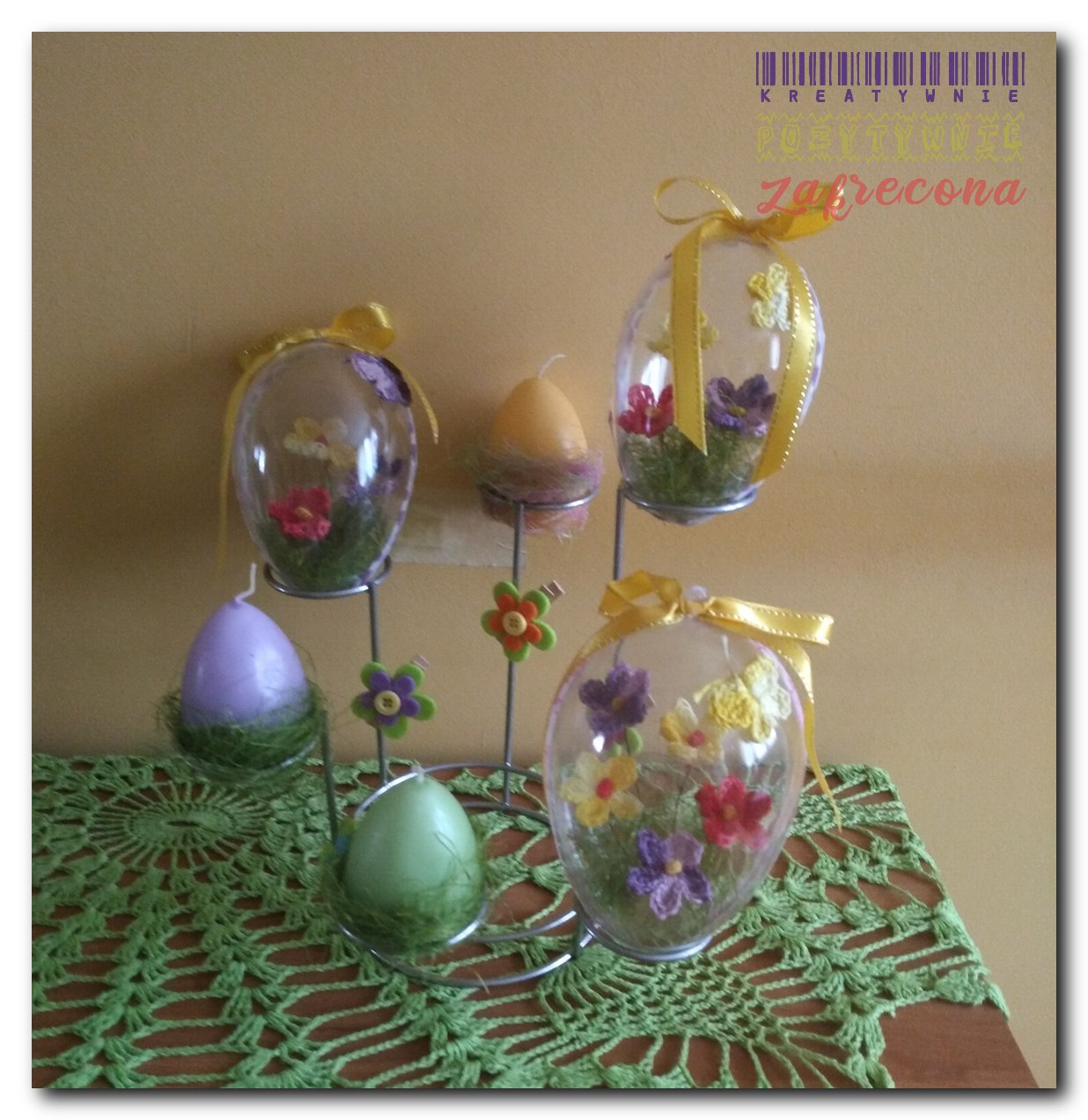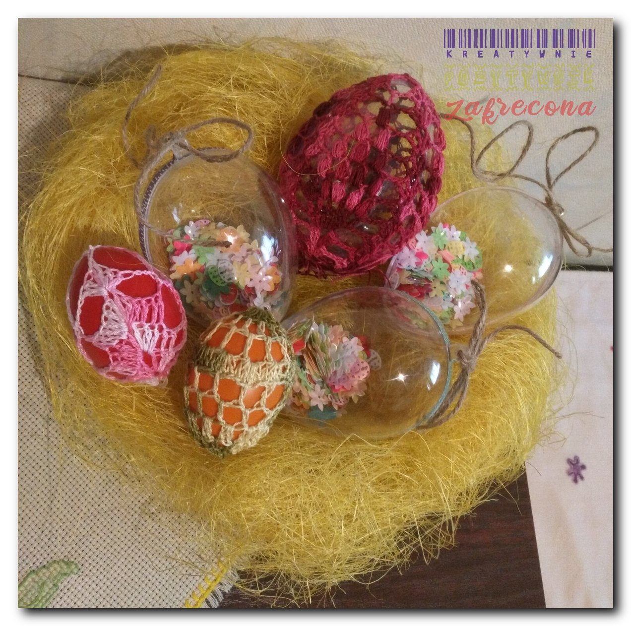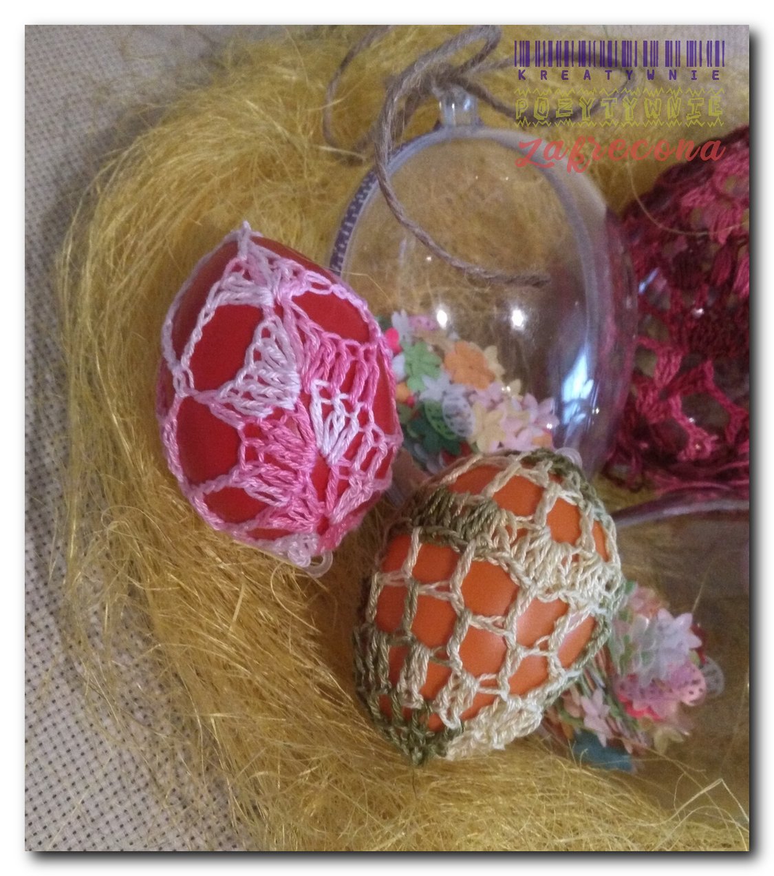 Pisanki i koszyczki w nowej odsłonie w kategorii: Dekoracje MOJE INNE, FAJNE, RĘKODZIELNICZE ARCYDZIEŁA- UUU, OOO ... Kartki Wielkanocne 2021 Różowo-złote kule