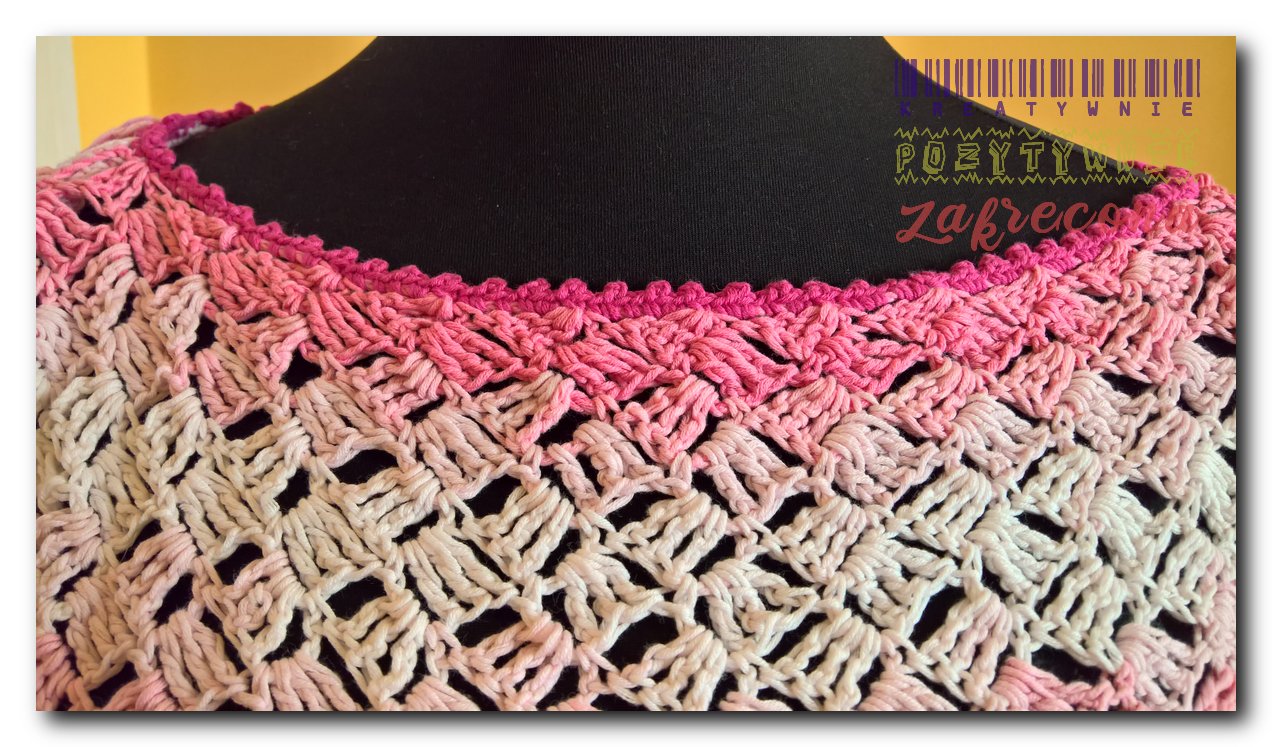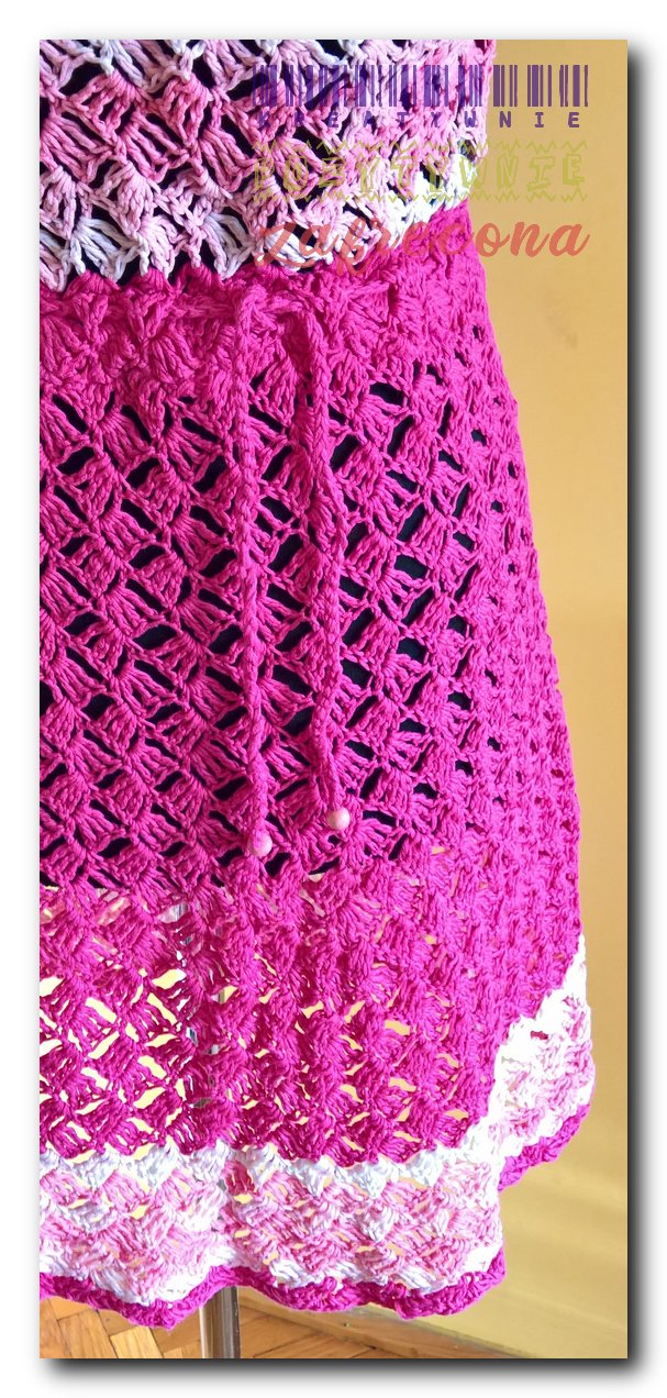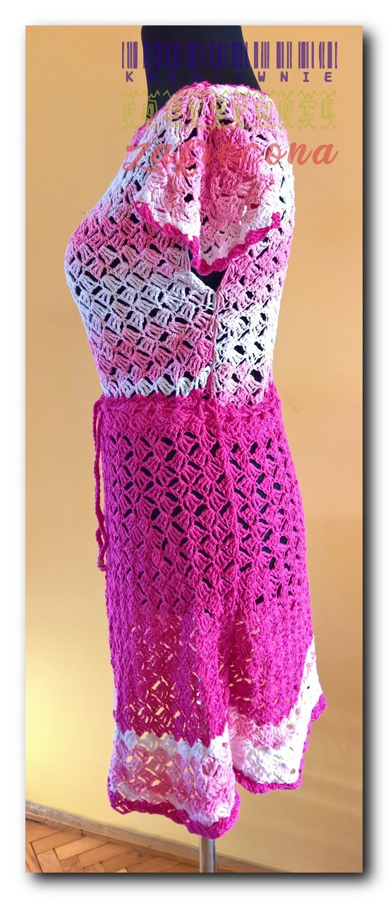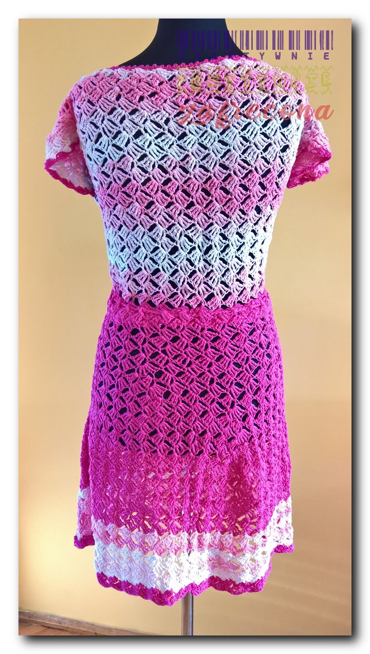 Różowa sukienka "Slanted granny stitch"