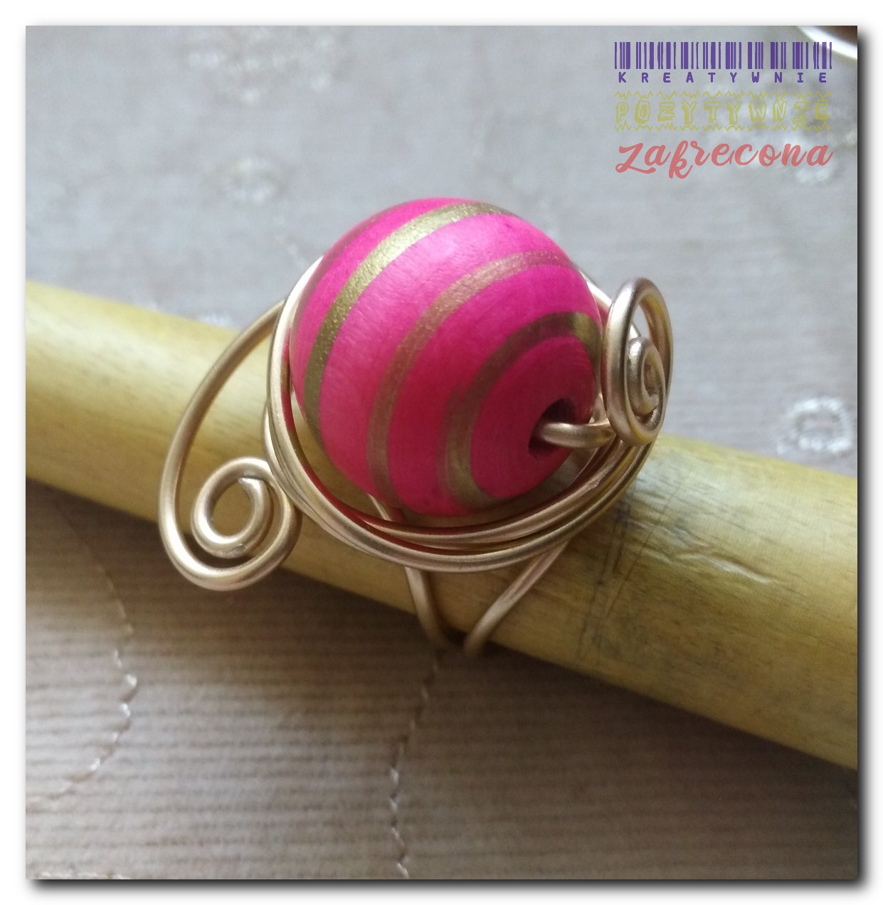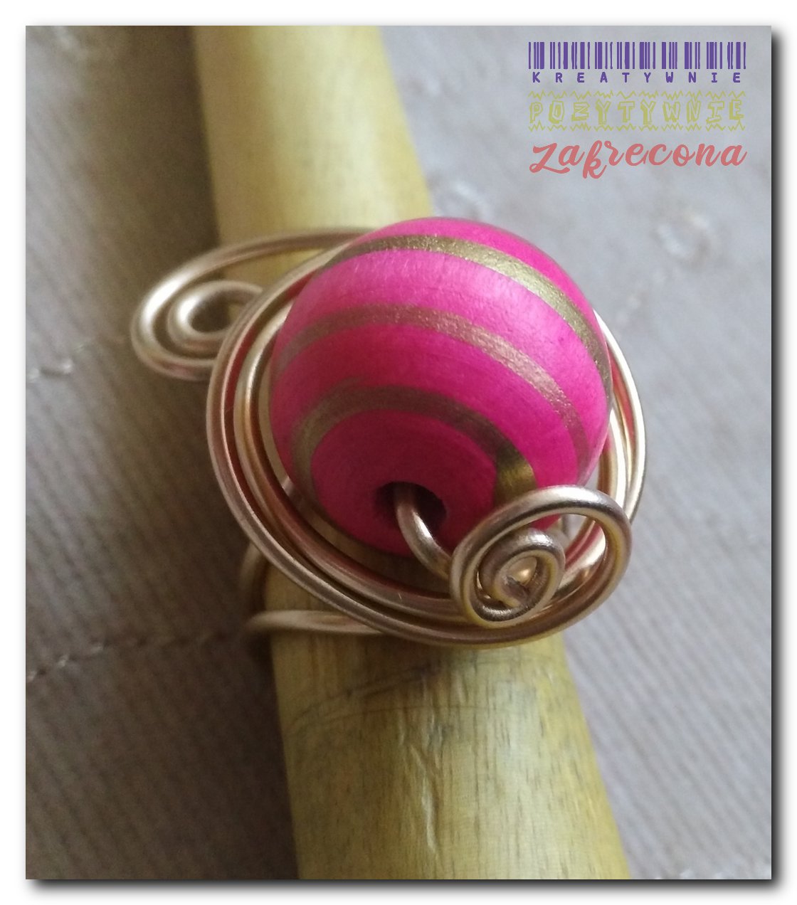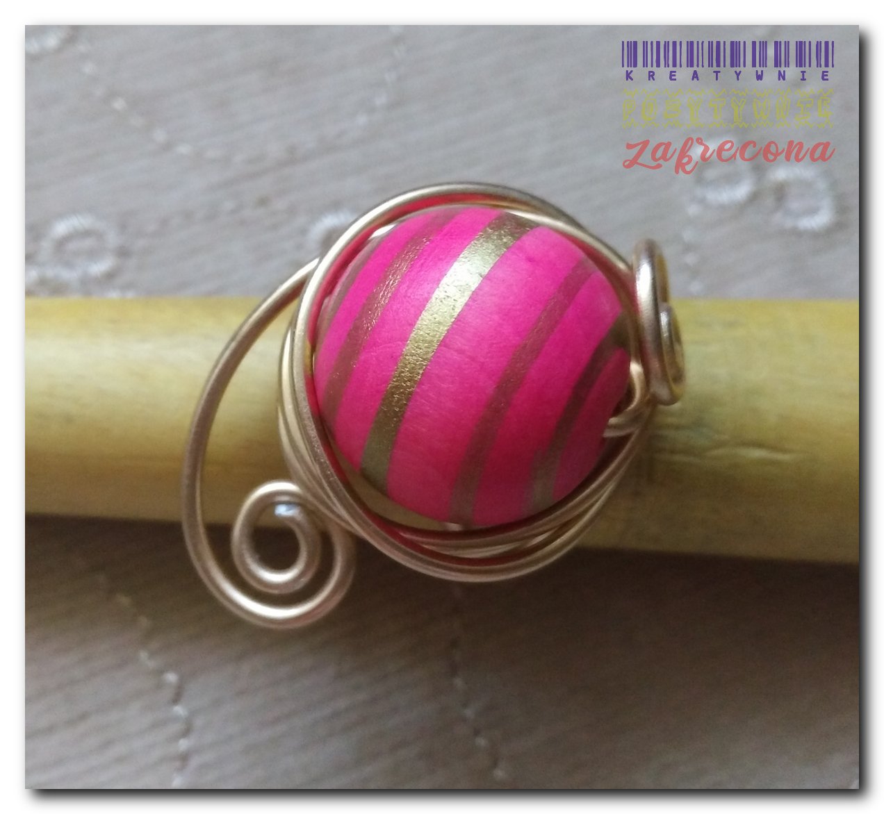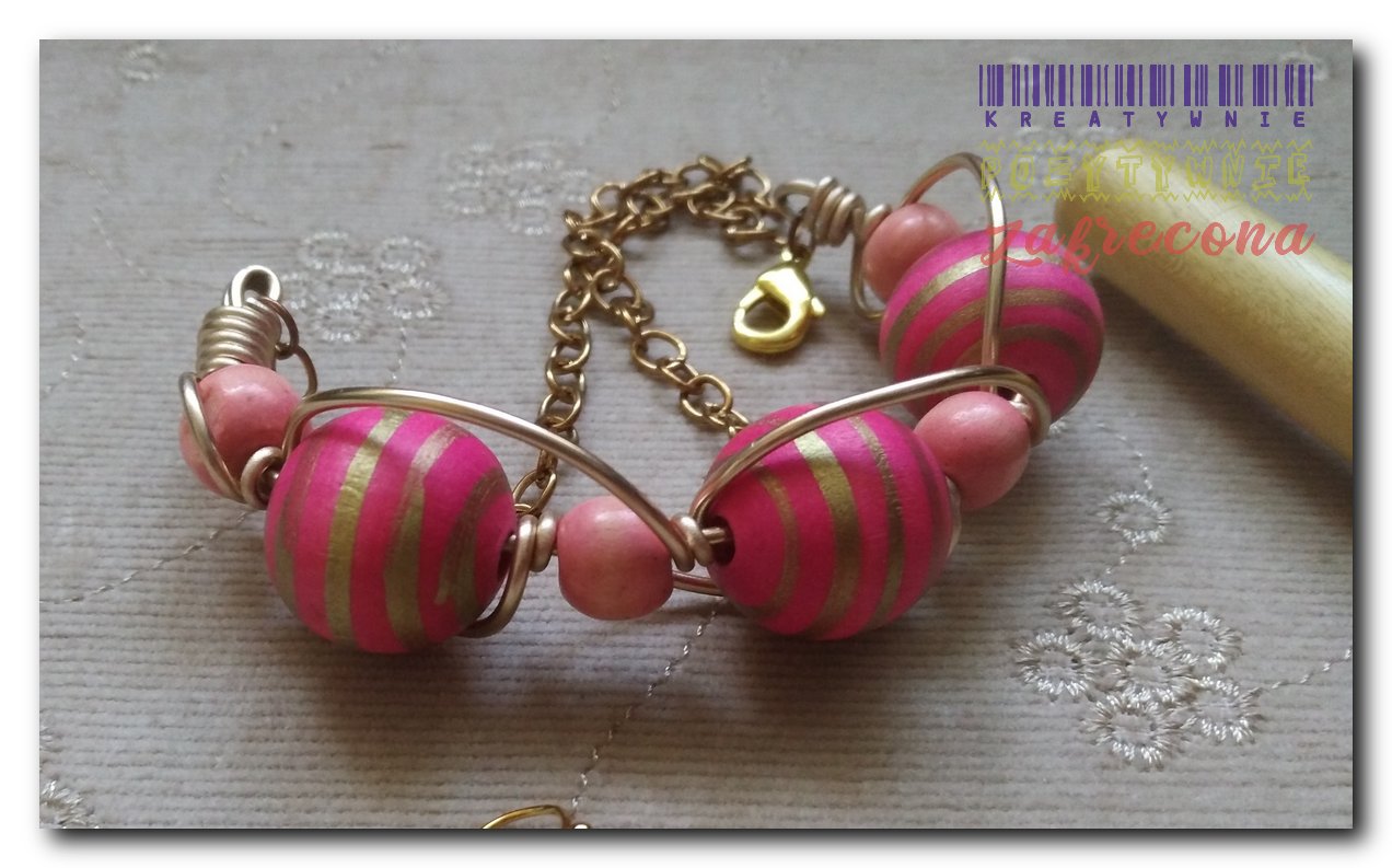 Biżuteria zrobiona jest z drutu aluminiowego 1,5 mm oraz drewnianych, malowanych kul