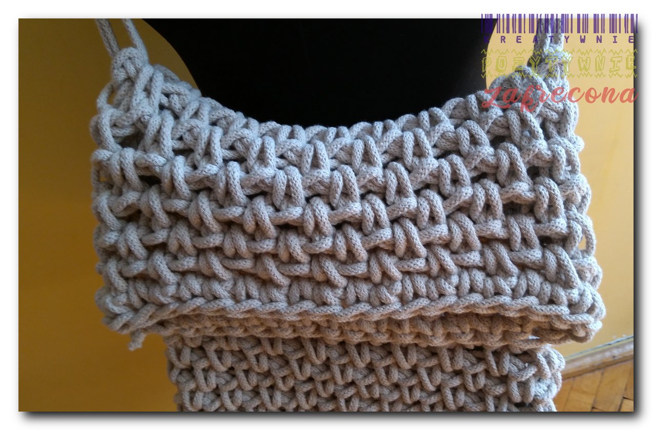 Składana listonoszka w kategorii: Torebki na sprzedaż Szydełko: 9 mm Sznurek: 5 mm MOJE INNE, FAJNE, RĘKODZIELNICZE ARCYDZIEŁA- UUU, OOO ... Duża plażówka Duża torba na ramię