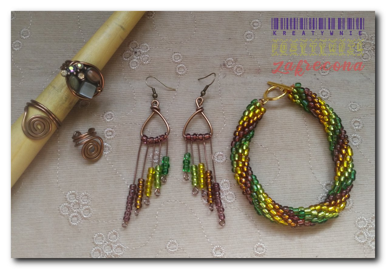 - Koraliki szklane TOHO 3 mm (w sumie ok. 400; 5 kolorów po ok. 90 sztuk)