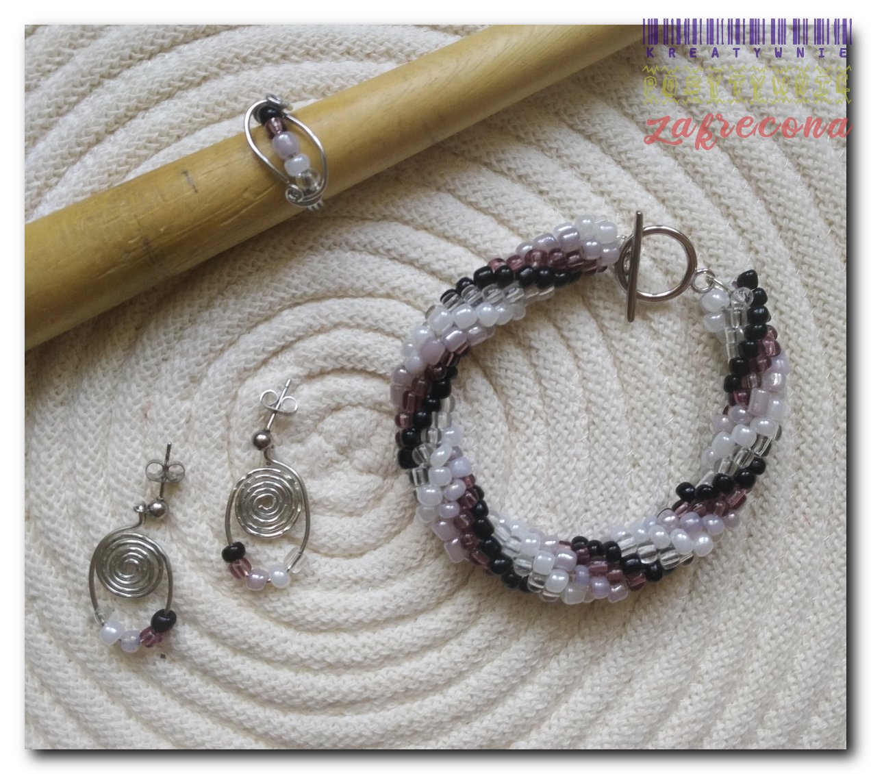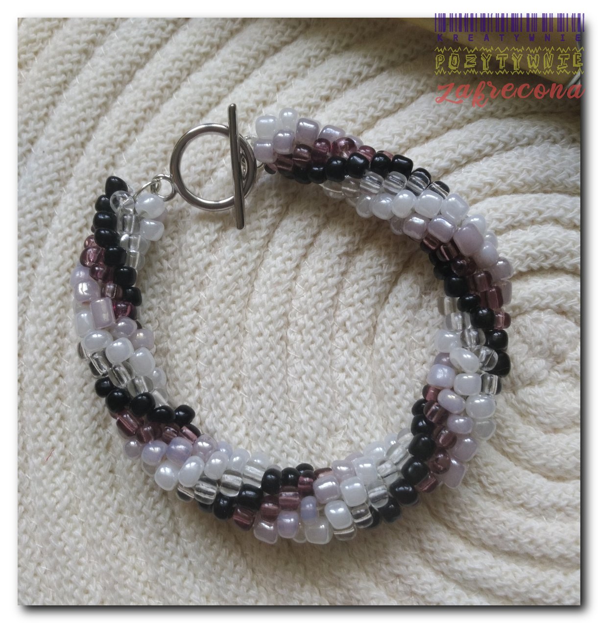 - Koraliki szklane TOHO 3 mm (w sumie ok. 400; 5 kolorów po ok. 90 sztuk)
