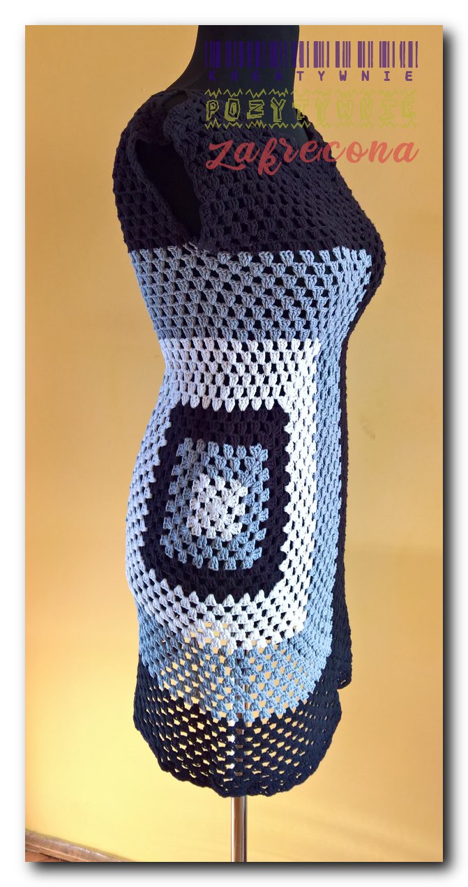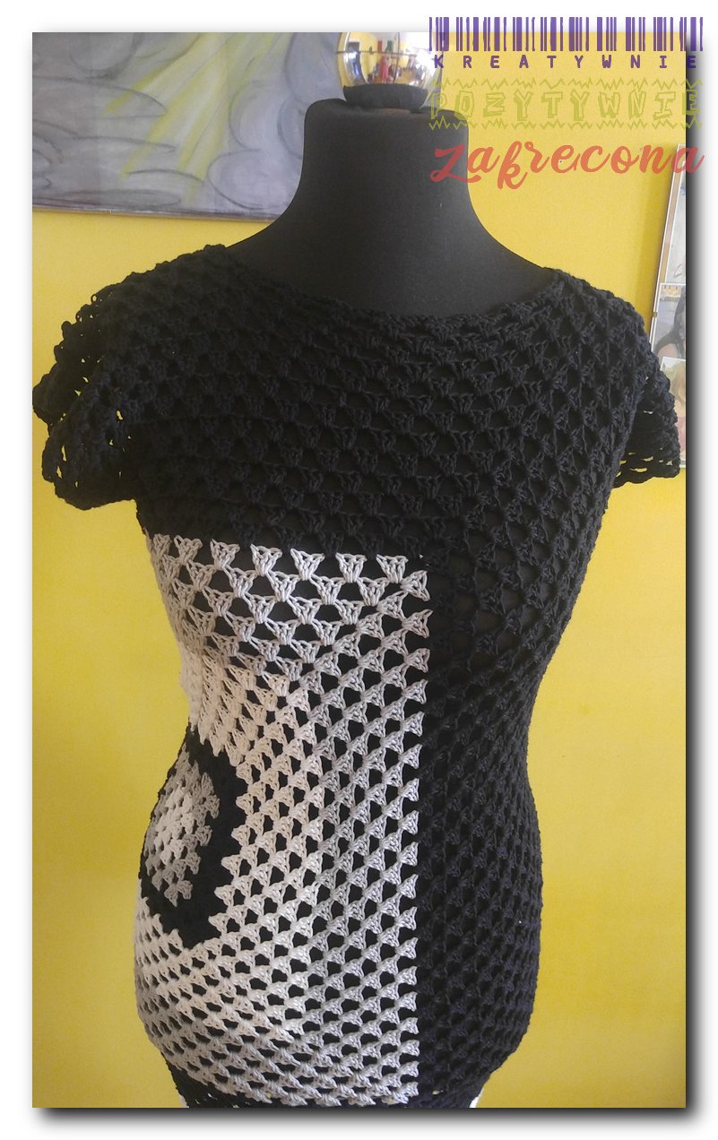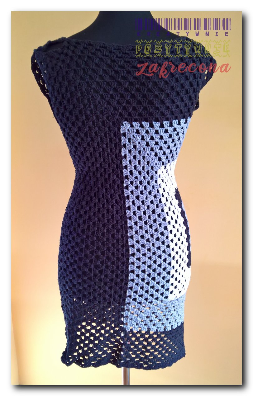 Sukienka biało-czarna 'granny stitch"