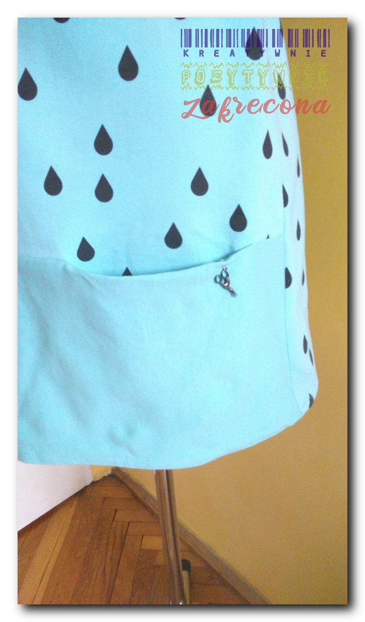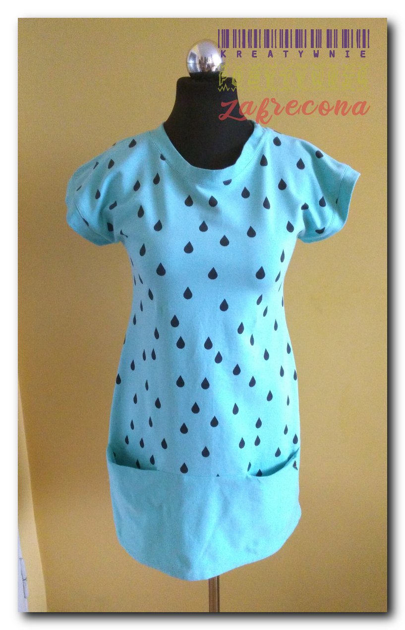 Bardzo wygodna sukienka z krótkimi rękawkami i kieszeniami z przodu. Uszyłam ją z dresówki gładkiej i drukowanej.