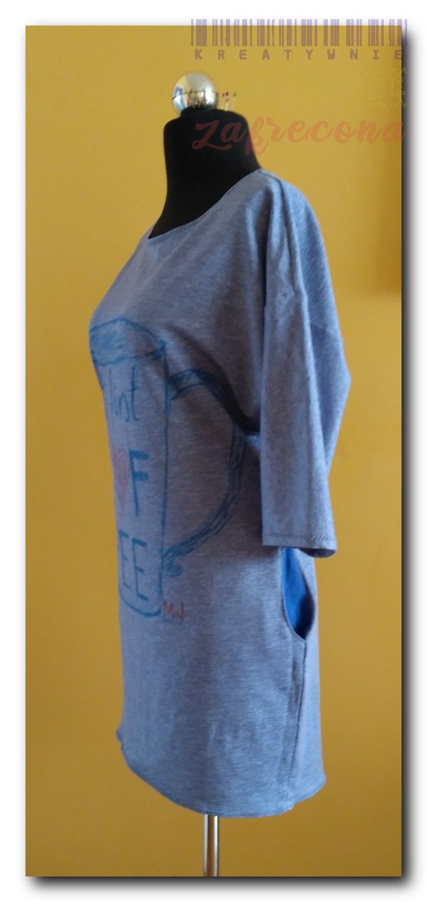 Sukienka "malowana" w kategorii: Na maszynie - ubrania jesienne i zimowe Tkanina: Dresówka gładka Flamastry do tkanin MOJE INNE, FAJNE, RĘKODZIELNICZE ARCYDZIEŁA- UUU, OOO ... Sukienka w kratkę Sukienka słoneczna