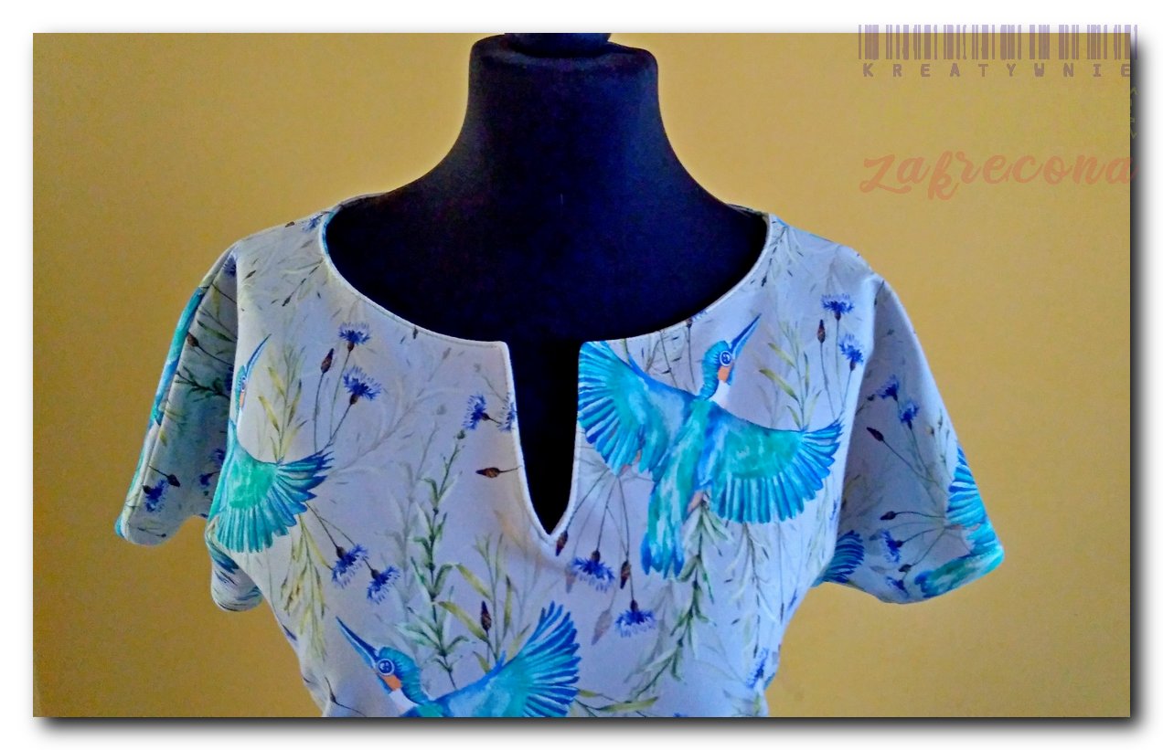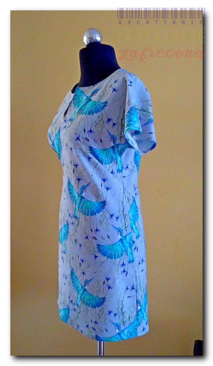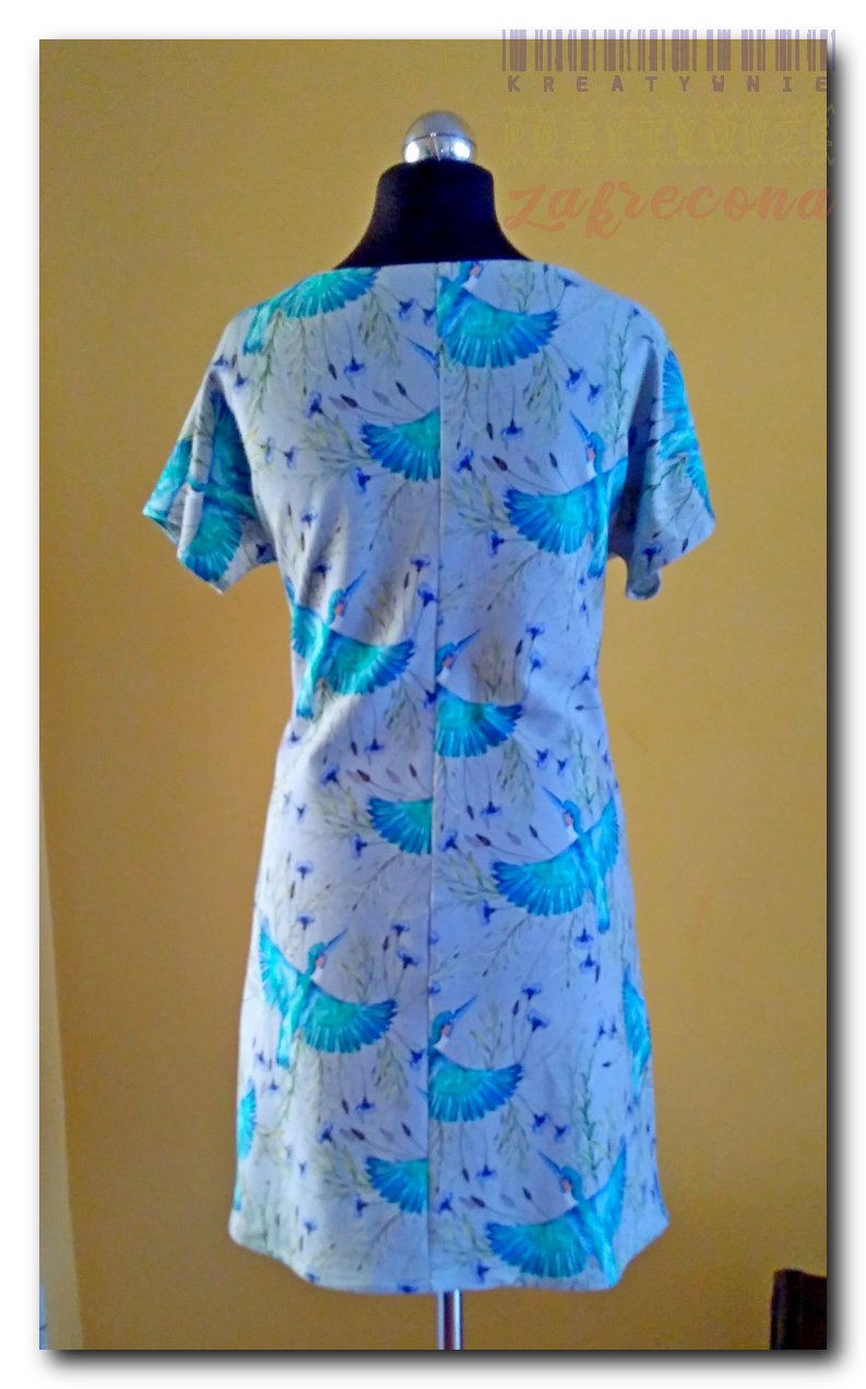 Sukienka jest wykonana wg tego samego wykroju co Ciepła sukienka w kratkę, ale bez kieszeni i z cieńszej dresówki.