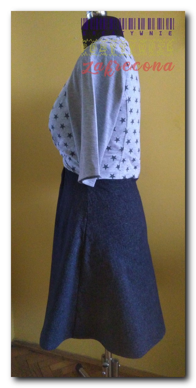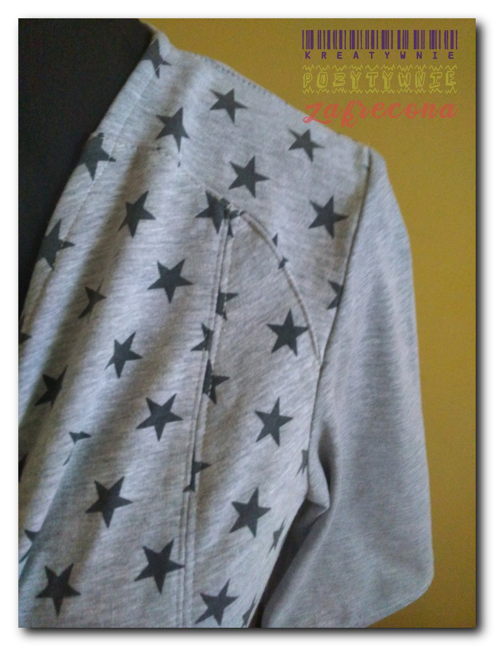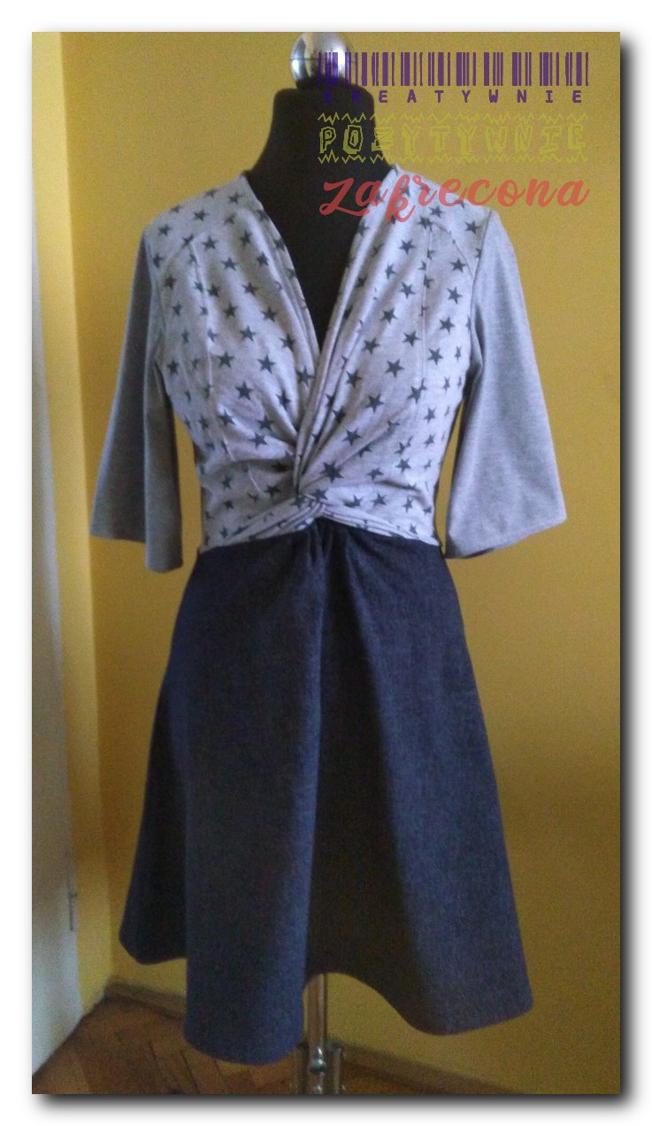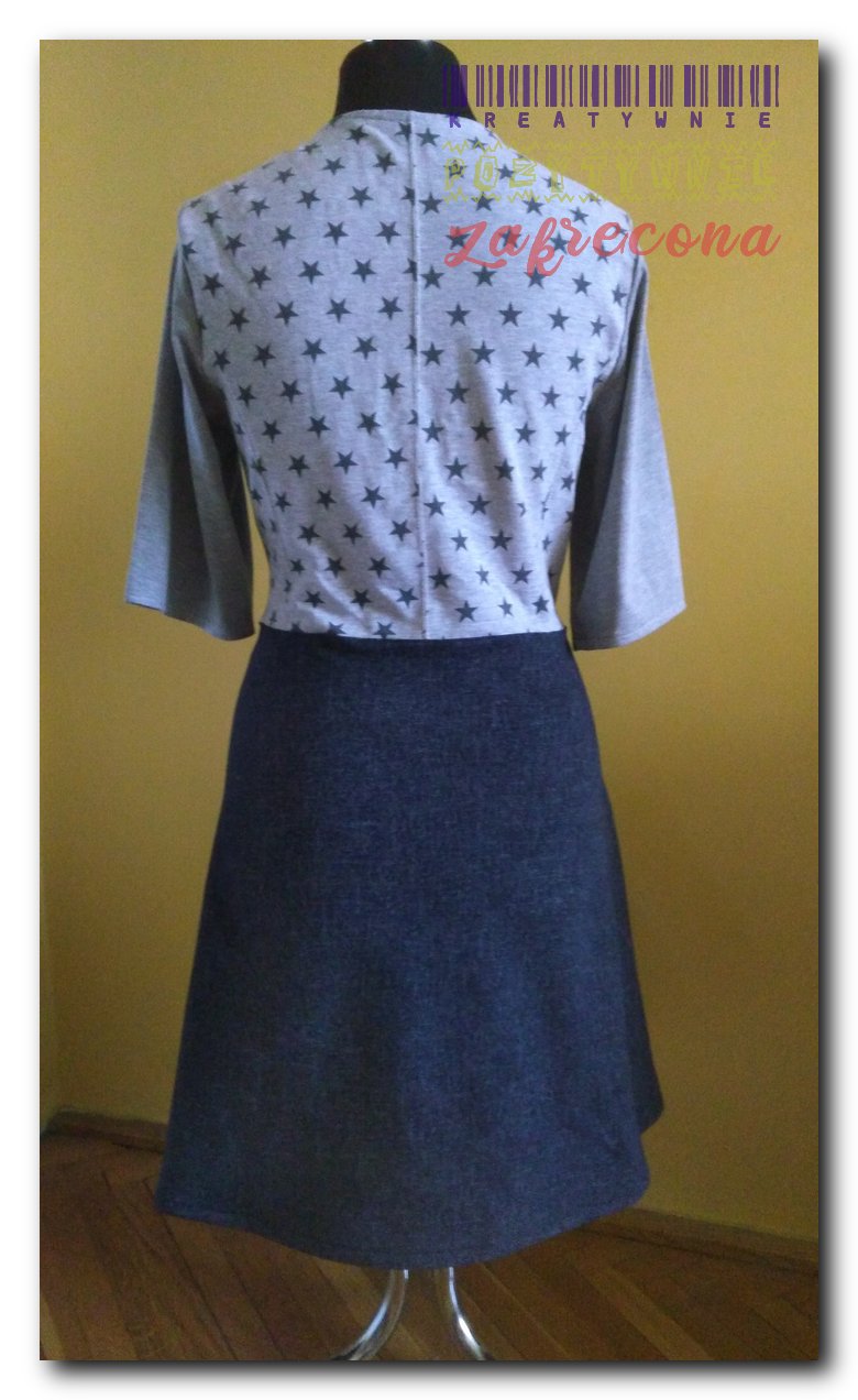 Sukienka uszyta jest z dresówki i jersey'u (rękawki). Rękawki są 3/4, a sukienka ładnie podkreśla talię. Sukienka nadaje się również na chłodniejsze dni wiosenne.
