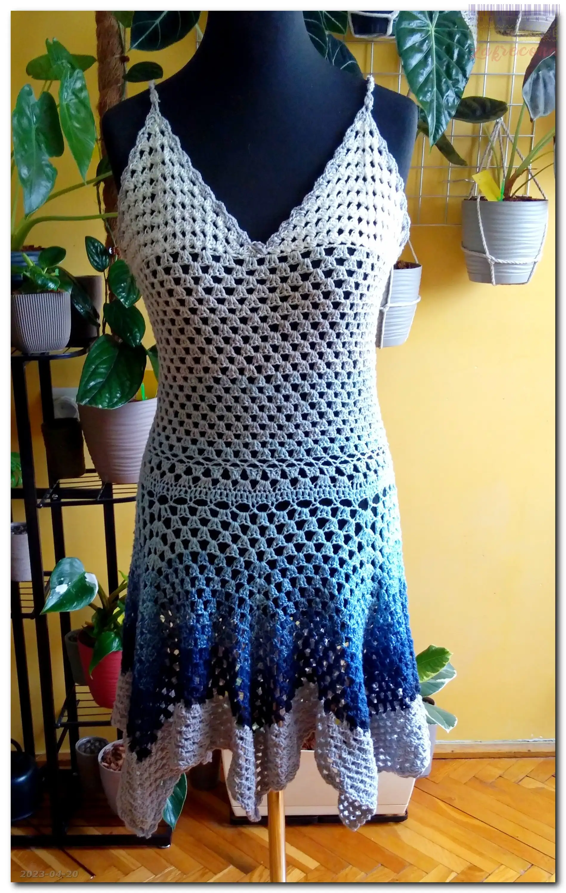 Sukienka z falbaną "granny stitch" - poprawka w kategorii: Na szydełku - ubrania wiosenne i letnie Włóczka: YarnArt Flowers Szydełko: 3,5 mm Wersja 1 MOJE INNE, FAJNE, RĘKODZIELNICZE ARCYDZIEŁA- UUU, OOO ... Top/sukienka - transformacja Top bez ramiączek - zmiana na top z ramiączkami