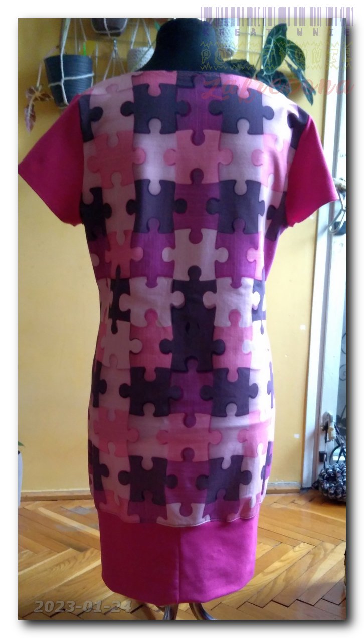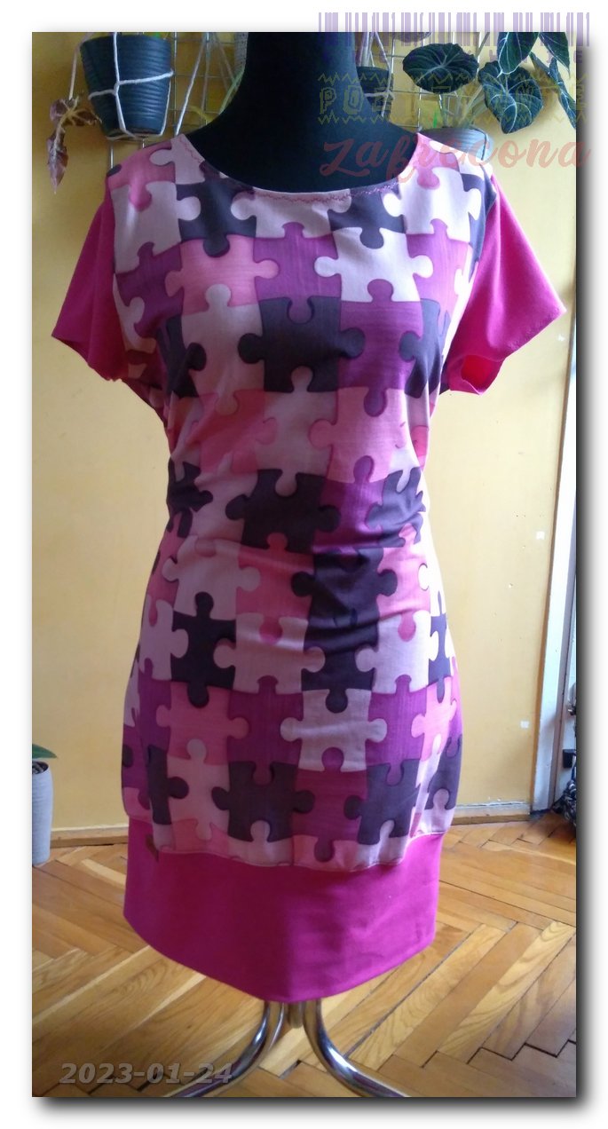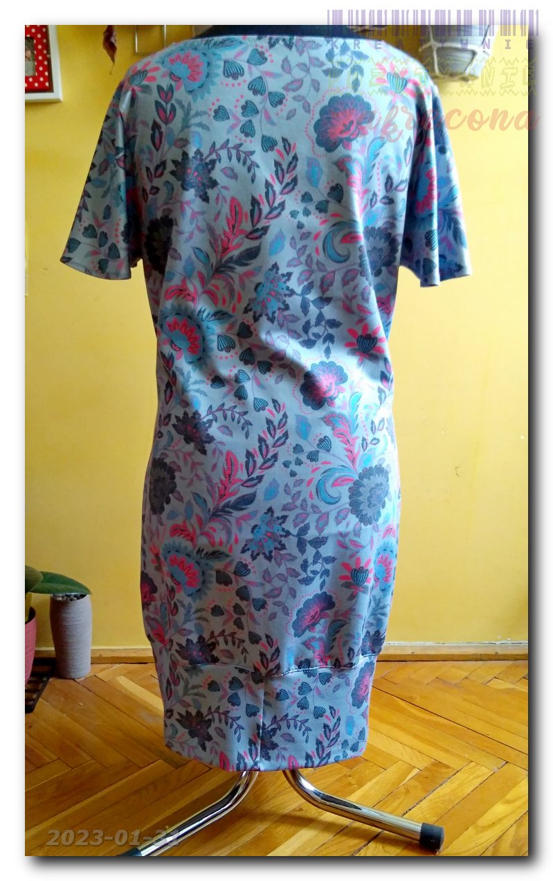 Sukienko-bluza w trzech kolorach (wersja z krótkim rękawem) w kategorii: Na maszynie - ubrania jesienne i zimowe Tkanina: Dresówka drukowana i gładka Wersja z długim rękawem. MOJE INNE, FAJNE, RĘKODZIELNICZE ARCYDZIEŁA- UUU, OOO ... Fuksjowe koła Styczeń 2023