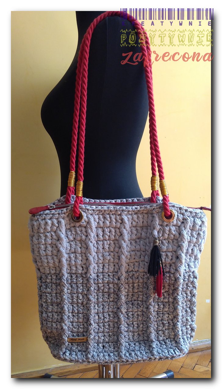 Szaro-czerwona shopperka