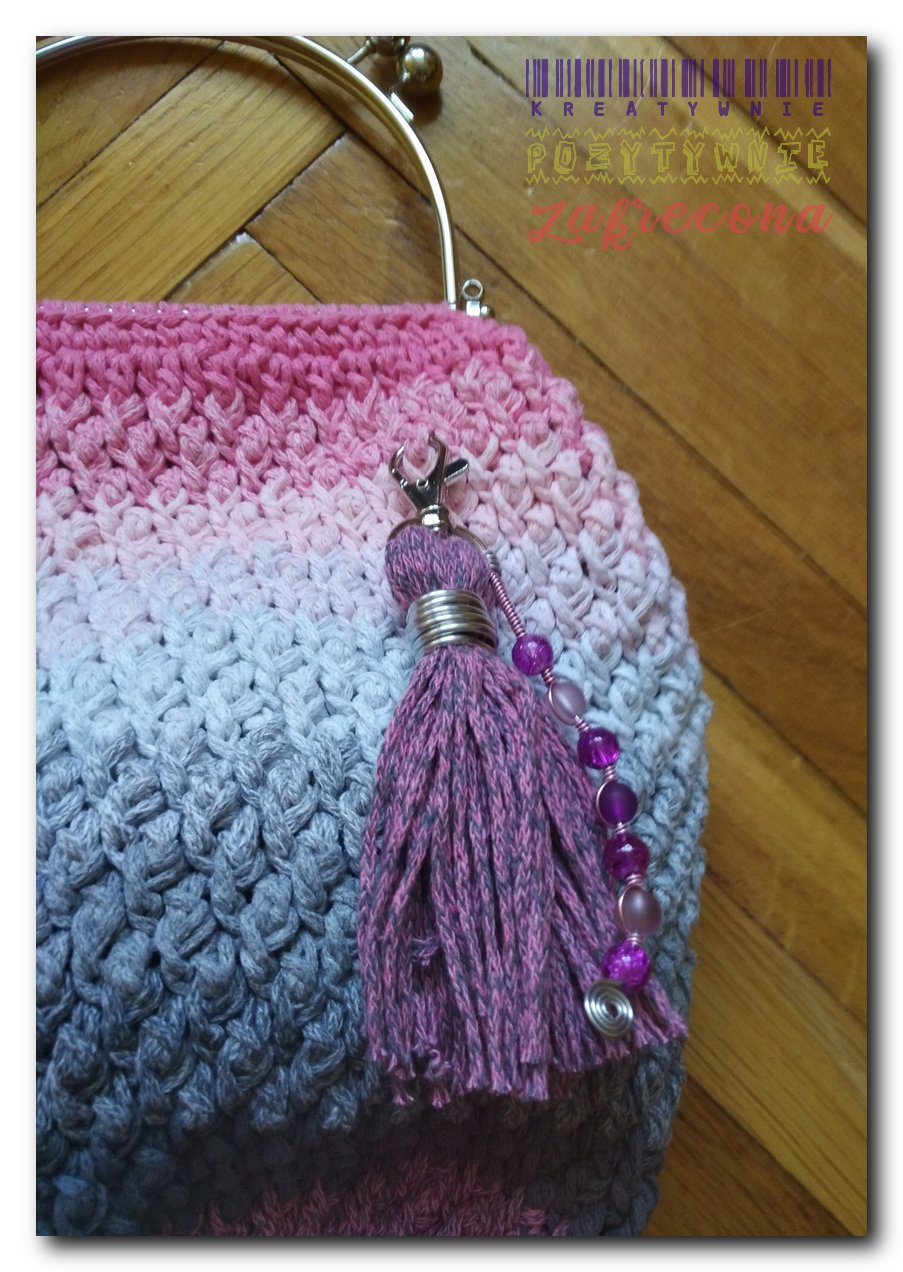 Oto jedna z możliwości wykorzystania sznurka marki Opus. Do wykonania tej torebki potrzebne jest również zapięcie "click-clack" oraz karabińczyk, koraliki szklane 8 mm i drut aluminiowy biżuteryjny - ale to już opcjonalnie wg uznania:)
