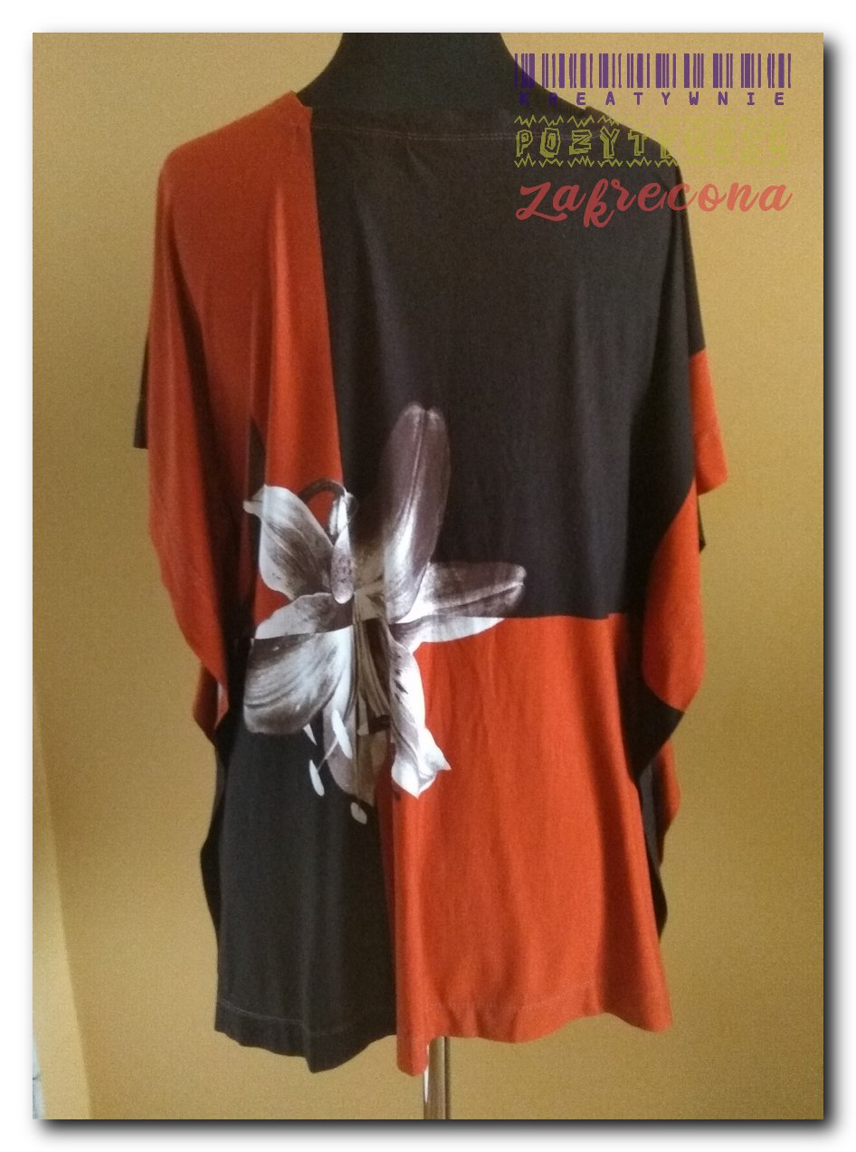 Zwiewna tunika uszyta z prostokątnego panelu. Pasuje do jeansów, leginsów oraz wąskiej spódnicy.