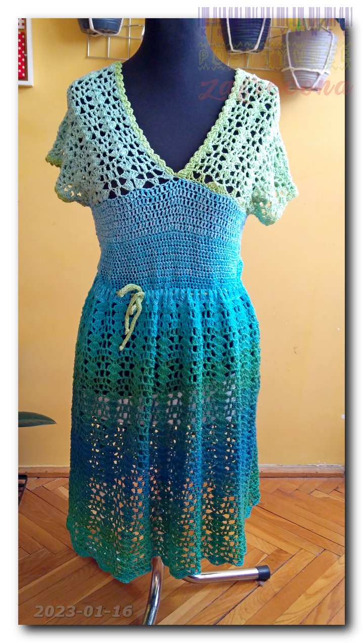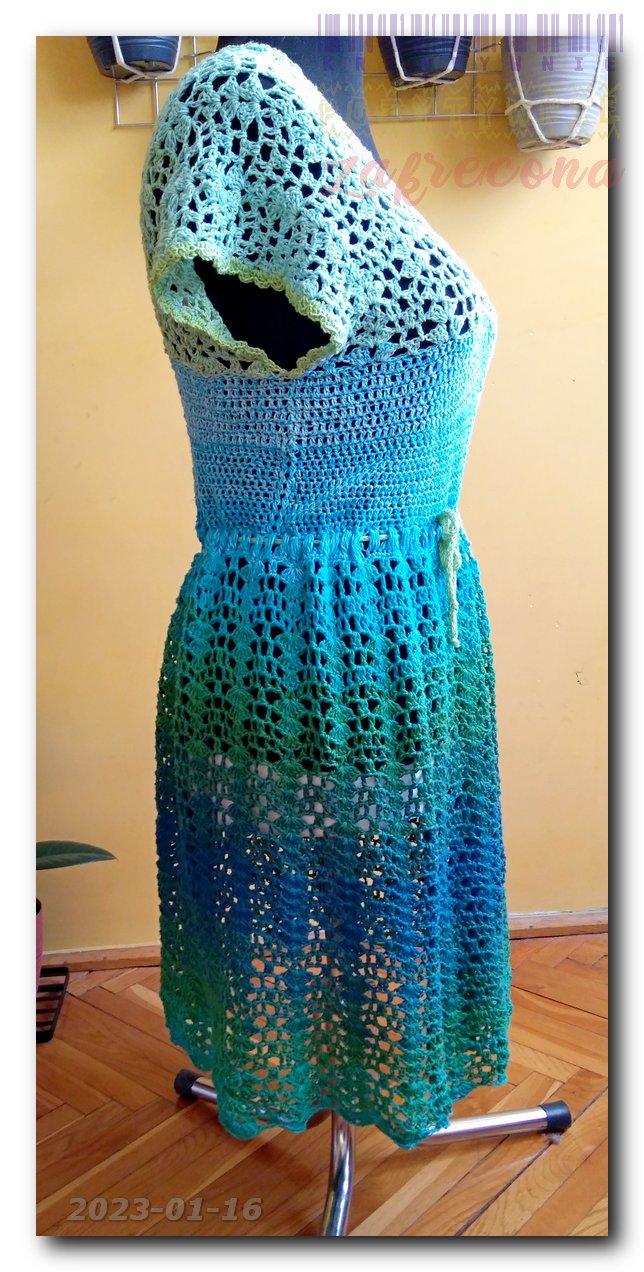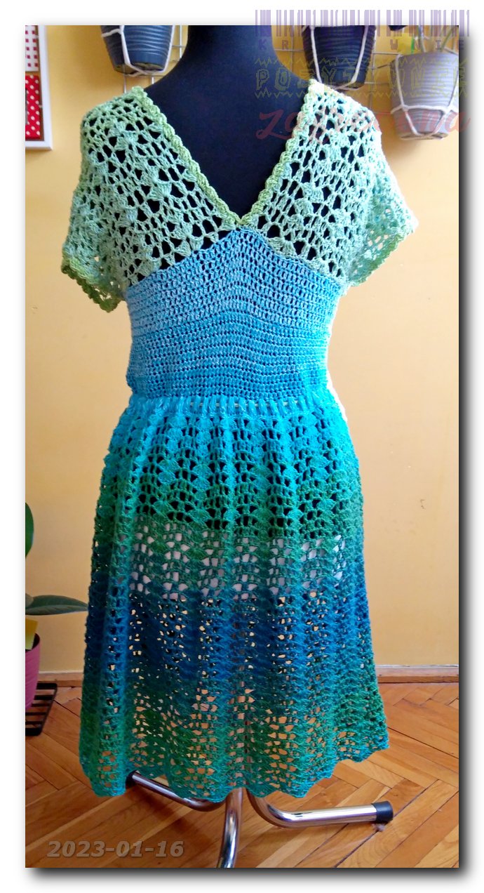 Zielono-niebieska sukienka - wersja ulepszona w kategorii: Na szydełku - ubrania wiosenne i letnie Szydełko: 3,5 mm Włóczka: YarnArt Flowers Zielono-niebieska sukienka: wersja 1 MOJE INNE, FAJNE, RĘKODZIELNICZE ARCYDZIEŁA- UUU, OOO ... Styczeń 2023 Sukienka "Graffiti"